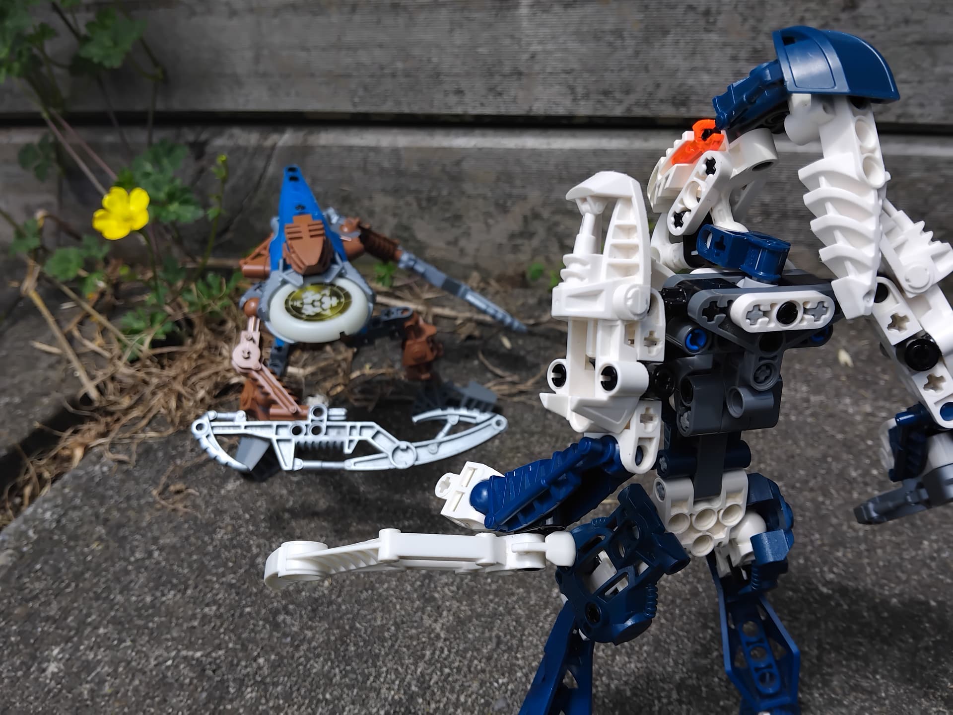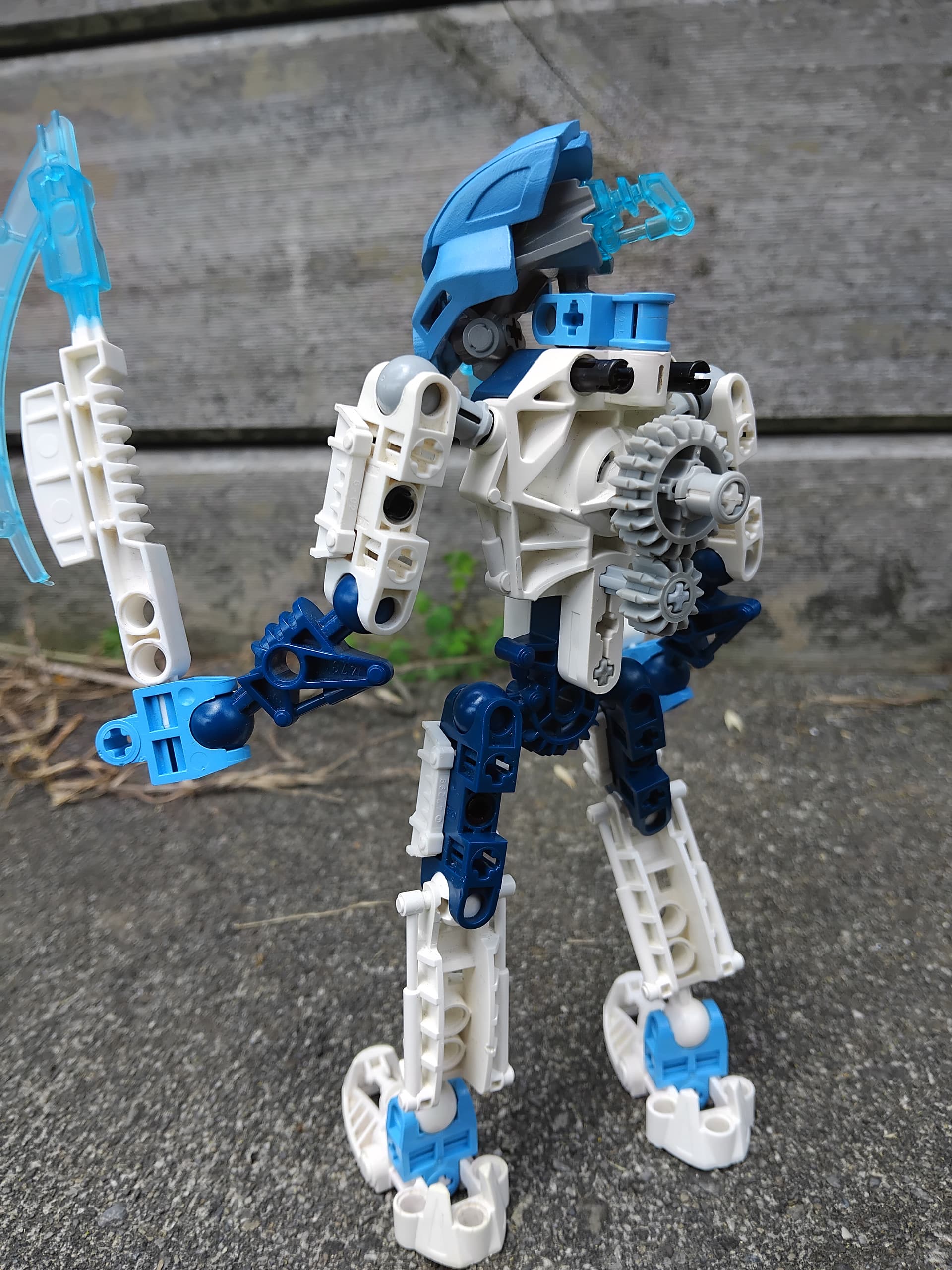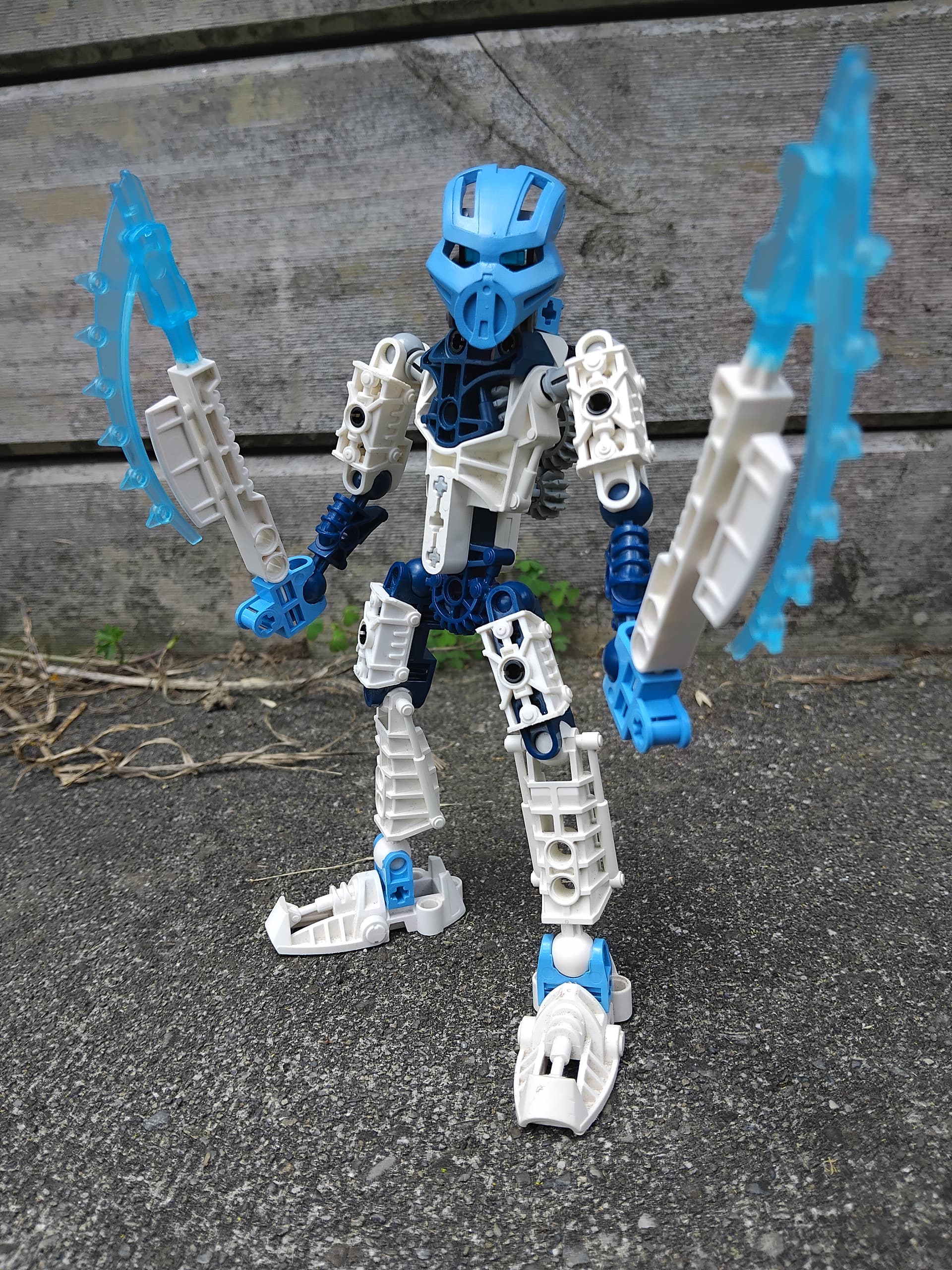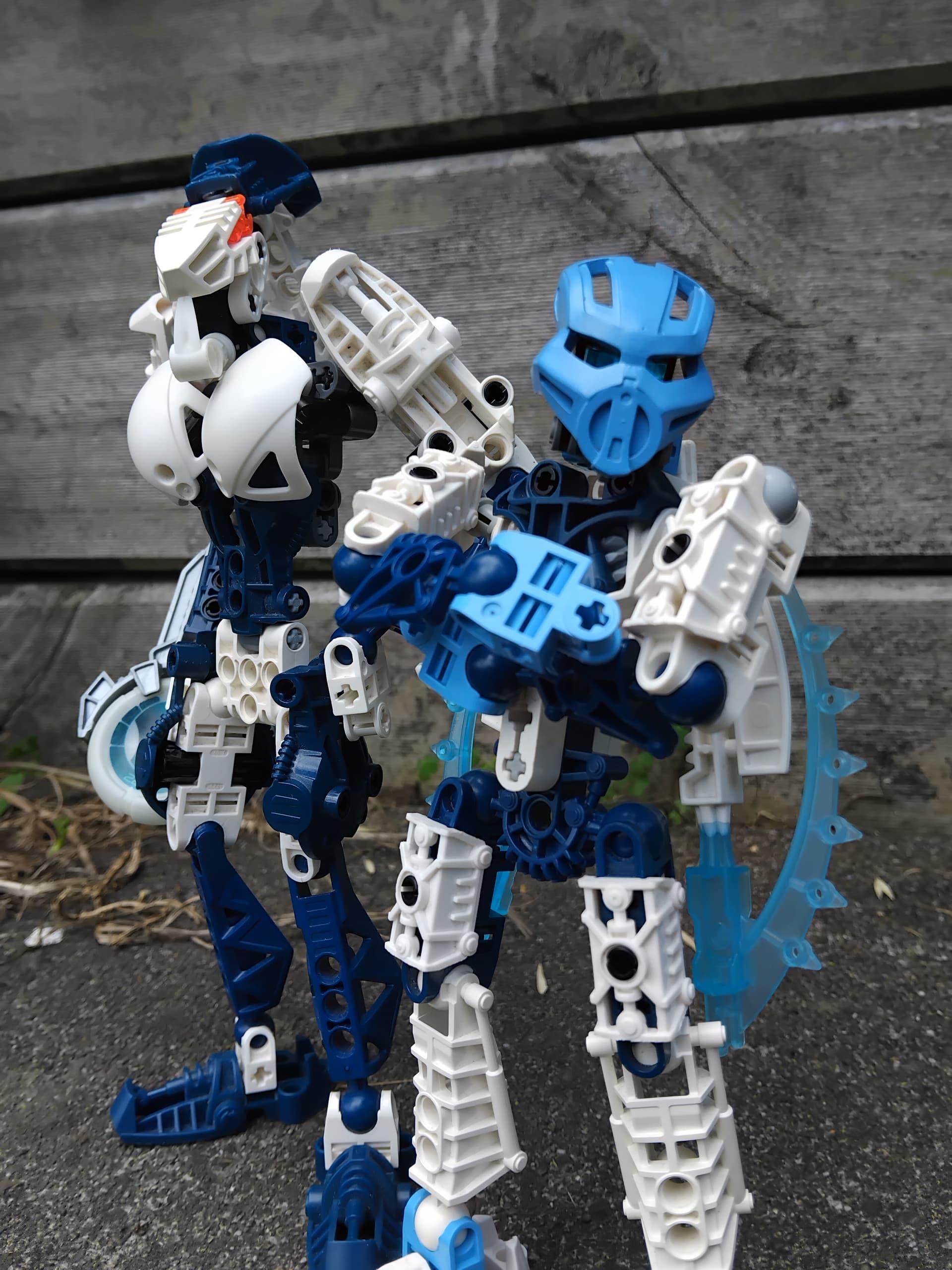 Bonus: The toa she befriended, Hotoke the toa of ice. Hotoke means winter or cold in Maori. He is a regular toa Metru build with some modifications to make him more posable. His mask is a medium blue custom Volitak I bought from Buyusforge on Etsy (although I don’t think its on their store anymore).