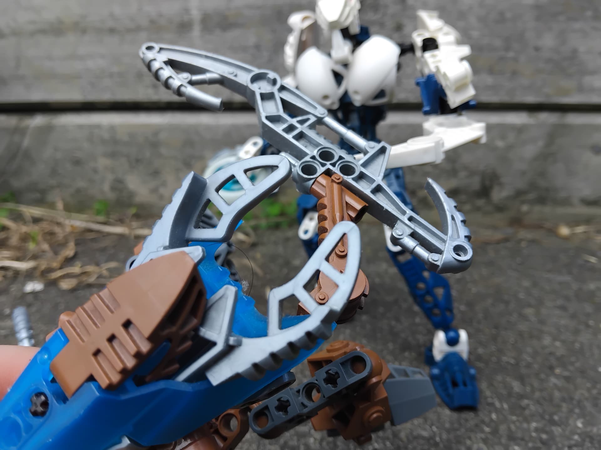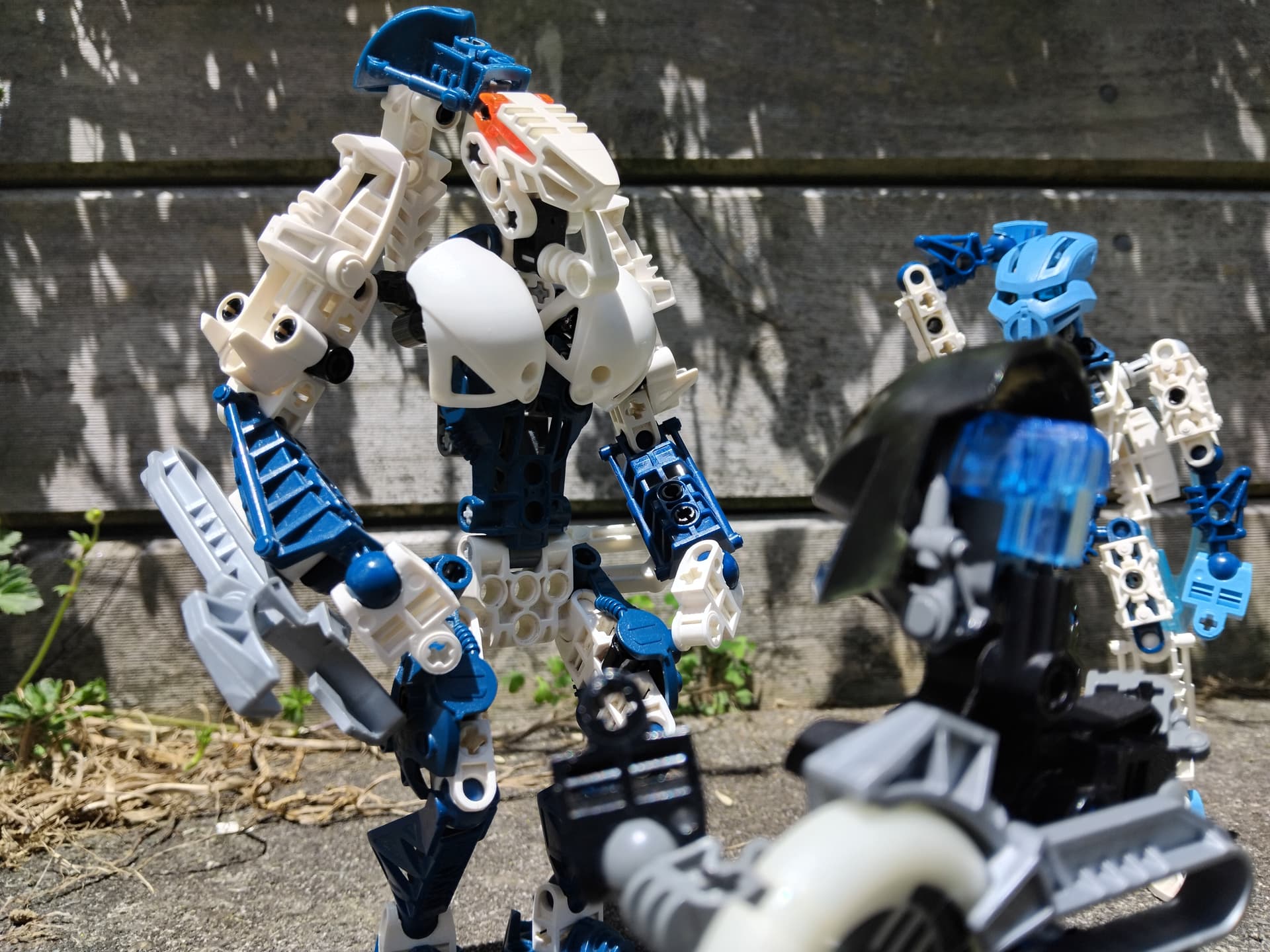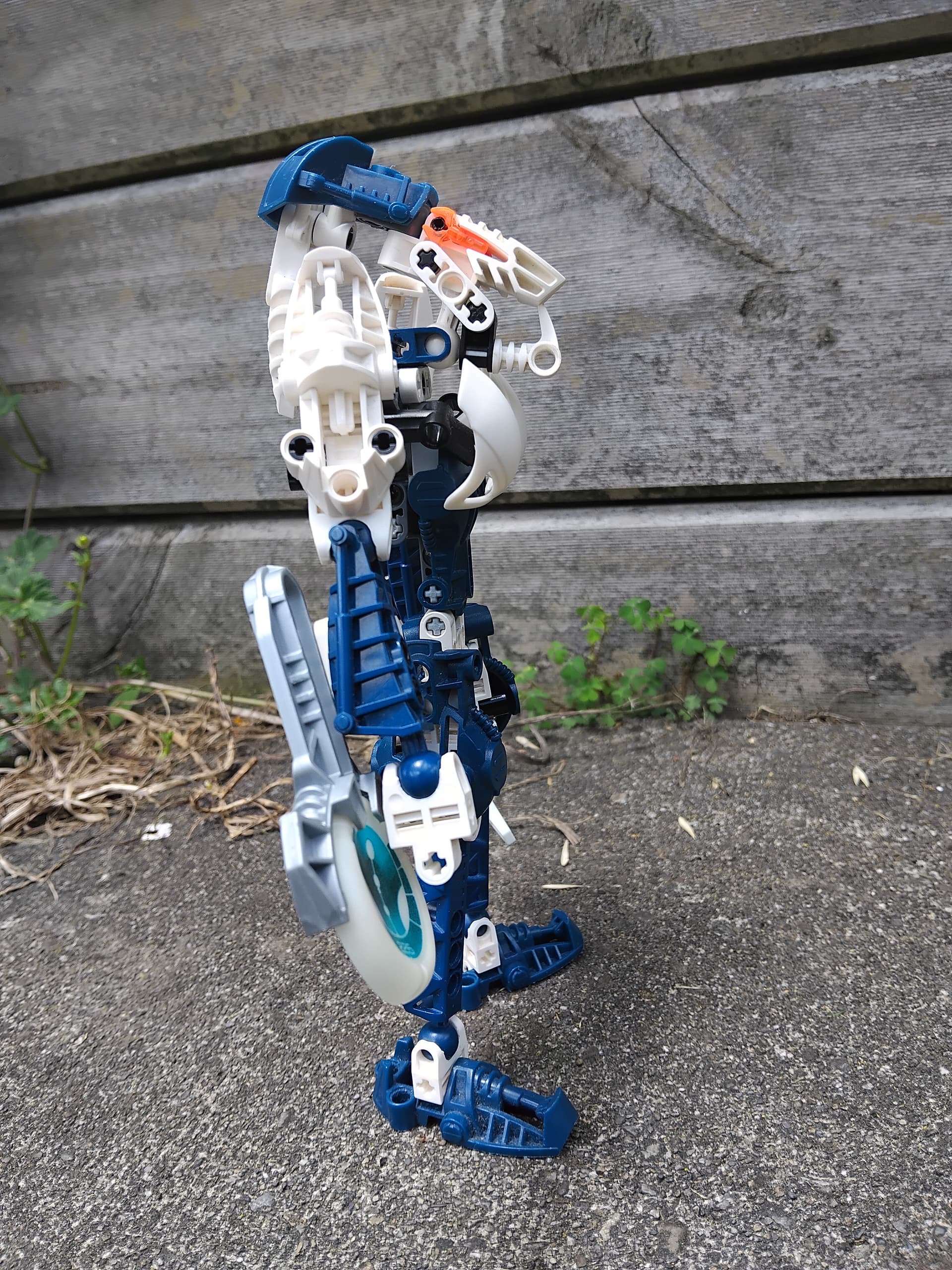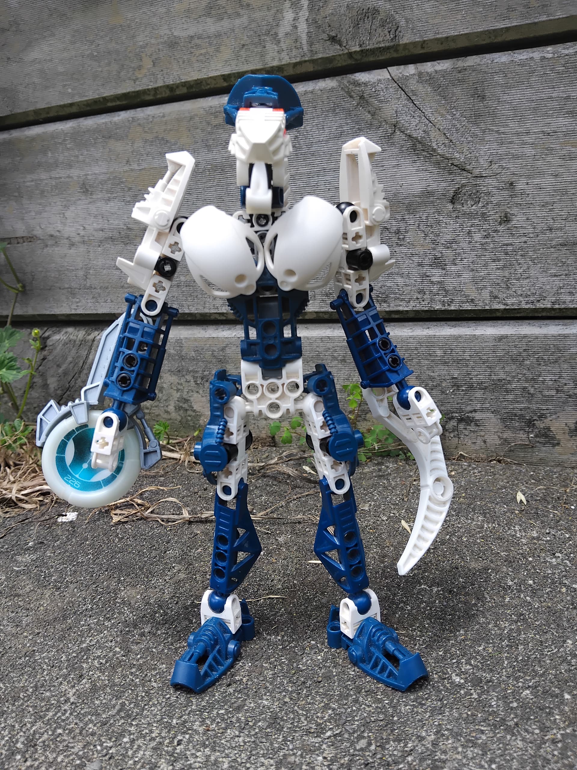 Bonus: The toa she befriended, Hotoke the toa of ice. Hotoke means winter or cold in Maori. He is a regular toa Metru build with some modifications to make him more posable. His mask is a medium blue custom Volitak I bought from Buyusforge on Etsy (although I don’t think its on their store anymore).