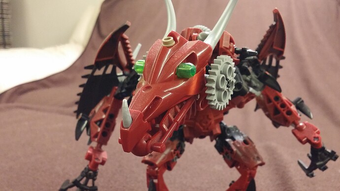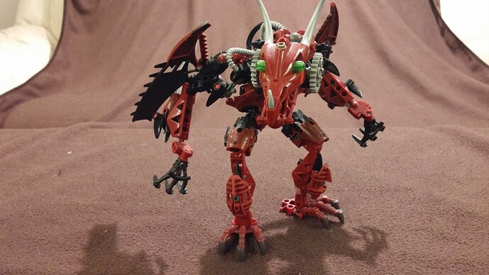 Long ago, the dragons lurked in the darkest swamps of the Region of Jungle in Okoto, hunting every creature in sight, but mainly kept to themselves. When jungle villagers came across their realm, though, they were less than welcoming. The dragons fed well that night, and found that an entire new world at their doorstep. And from the mists they rose, curious and hungry. The jungle village was the first to burn, before the the small tribe of dragons realized they had more than a meager forest before them, but an entire island. An entire new domain to hunt. The Protectors attempted to rally the villagers against them, but the tribes lacked coordination, and tried to fend for themselves. One by one the other villages fell, and the tribesmen were driven to the doorstep of the ancient city…and the jaws of the skull spiders. But, as ironic fate would have it, the spiders had found themselves at odds with the dragons as well, and had fared no better. In such a dire crisis, civilization and savagery temporarily joined forces against the greater savagery, and the two armies met at the great stone bridge before the city, and it was there that the voracious monsters revealed their darkest secret. Their parts…their very bodies…transformed…and stood, swords drawn, as massive warriors. A gruesome battle ensued that day, lasting from the sun’s early rise until its dive beyond the horizon. The cost was heavy, and the dragon-fire fierce, but in the end the animals were defeated, and slowly hunted down and extinguished for good measure. However, to this very day, a myth persists that one member of the species survived the purge. Whether it returned to the misty depths from whence its brothers came, or fled the island the entirely, is unknown, but with the coming of the Toa, one question lingers in many villagers’ minds: what will happen if the titans cross paths? Many are confident the Toa would swiftly strike such a creature down. Others…are less than certain.