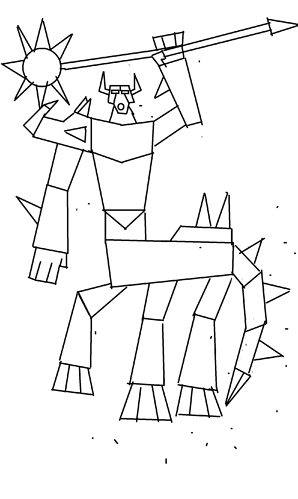 Sometimes, when I look at Ketar, I imagine his head like a lion’s head, his body is, of course, a scorpion, and his blade are like barely-if-at-all functioning wings, like a manticore.