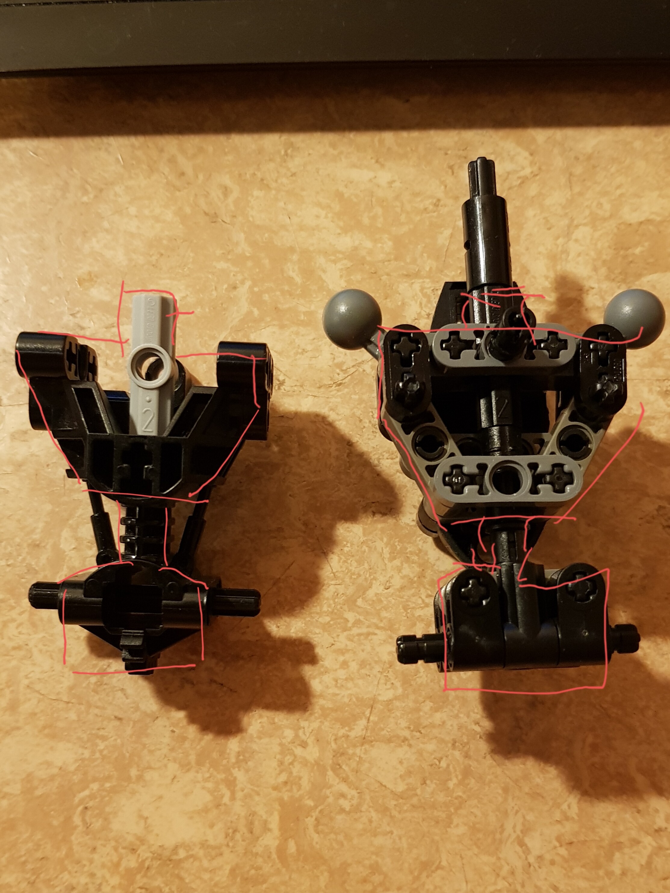 Looking at both torsos design we can clearly see that both share the same basic shapes and that is a very easy way to invoke the same feeling as another design. In this case we can determine agnostic of the builders intent that the torso builds design contains the basic shape of a Mata torso making the designs visually connected.