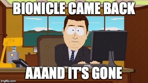 so bionicle is dead right? well define dead i mean the ip as a product doesnât have to be active along as the community is alive it is alive so no its not dead its just not being worked on and we all know lego wonât continue the ip after how bad the sales where so how come we canât continue it our selfs i mean the toy is not what matters right so why canât we just continue the story our selfs it could be like a weird fan fiction only its kinda sorta cannon i mean most community made story,s are pretty good all things considered i mean if we did it our selfs it doesnât have to be a reboot we can continue the g 1 or g 2 story so why donât we do that ? i mean wouldnât be cool to make something that explains what happened to kopaka on the red star or how bout what happened to the toa marhi during the battle between makuta teradax and mata nui well if lots of people like the idea ill make a topic for posting continuations of parts of bionicle lore.