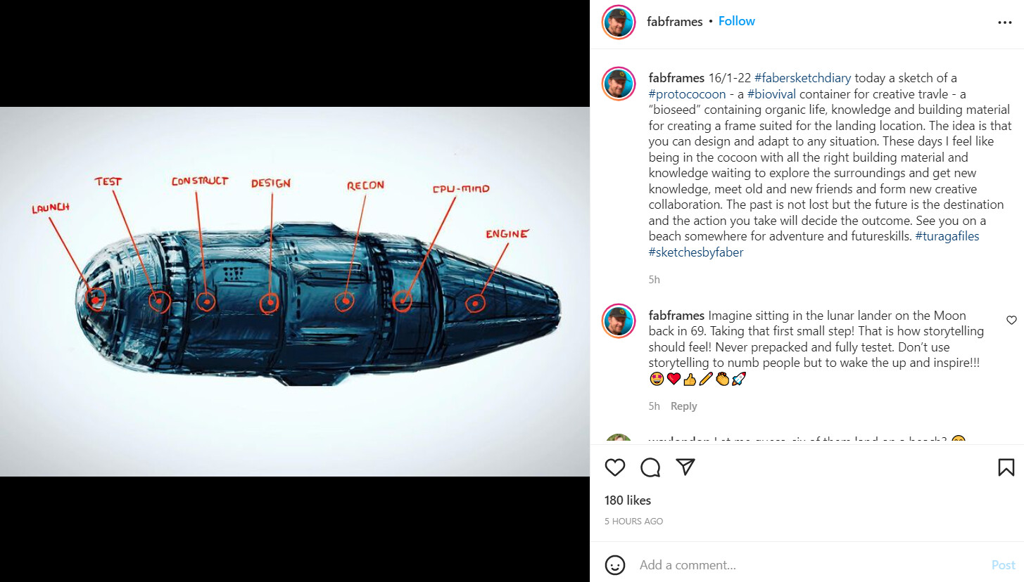 There are different red indicators on the drawing of the Bioseed which are rather blatantly named afterta loose understanding of the developmental process for pitching an idea to a company, which seems to carry the idea he’s presented that he’s definitely, really working on something.