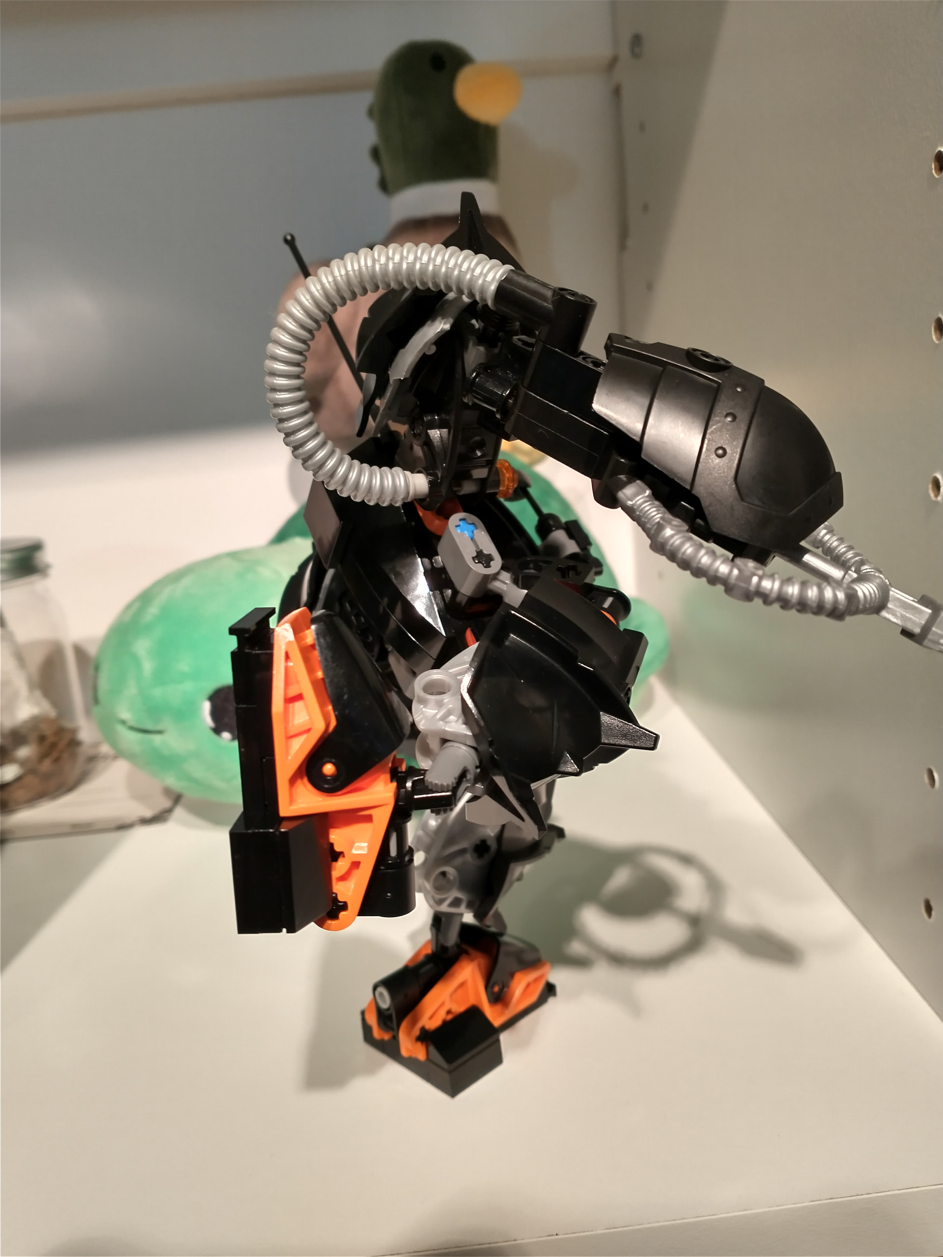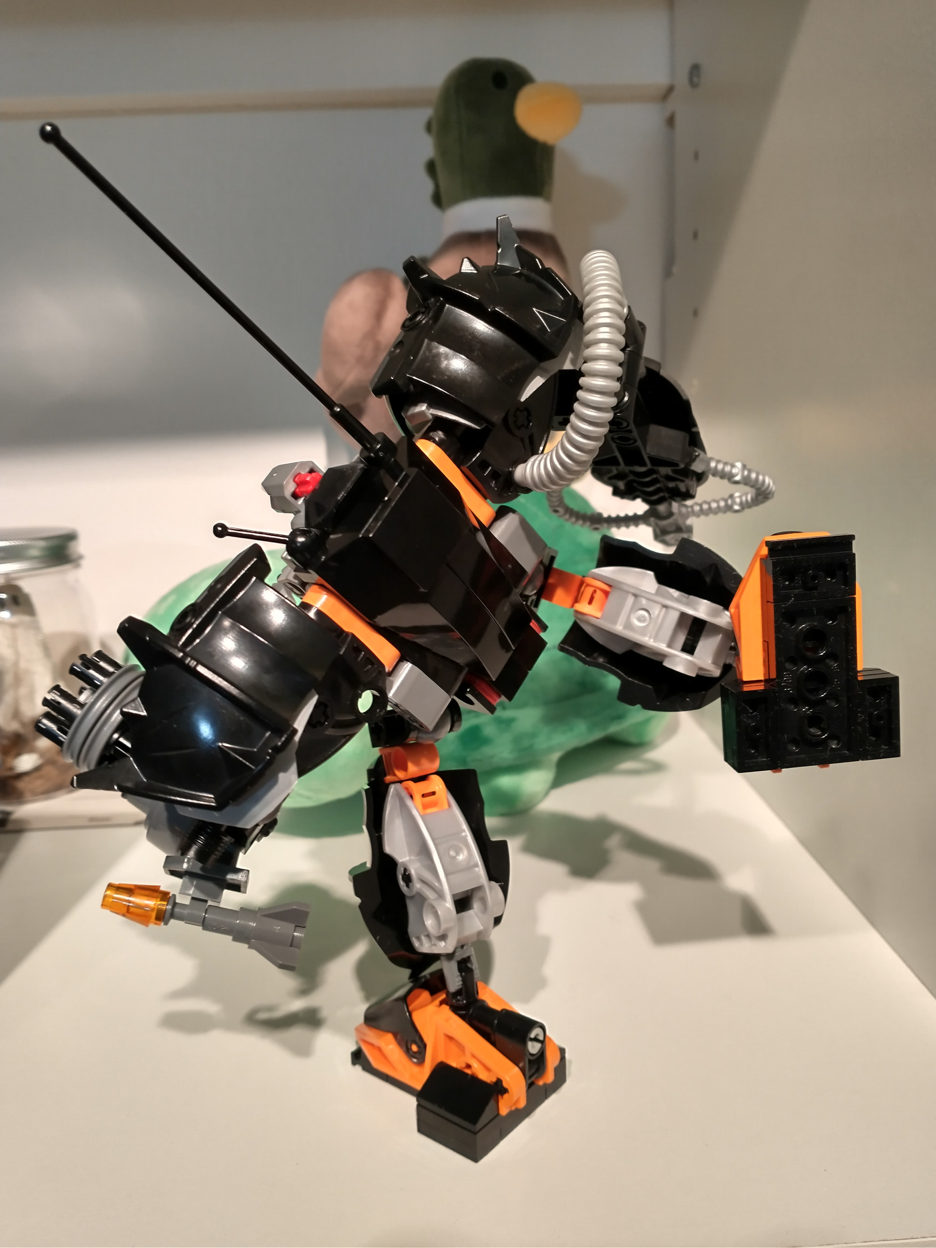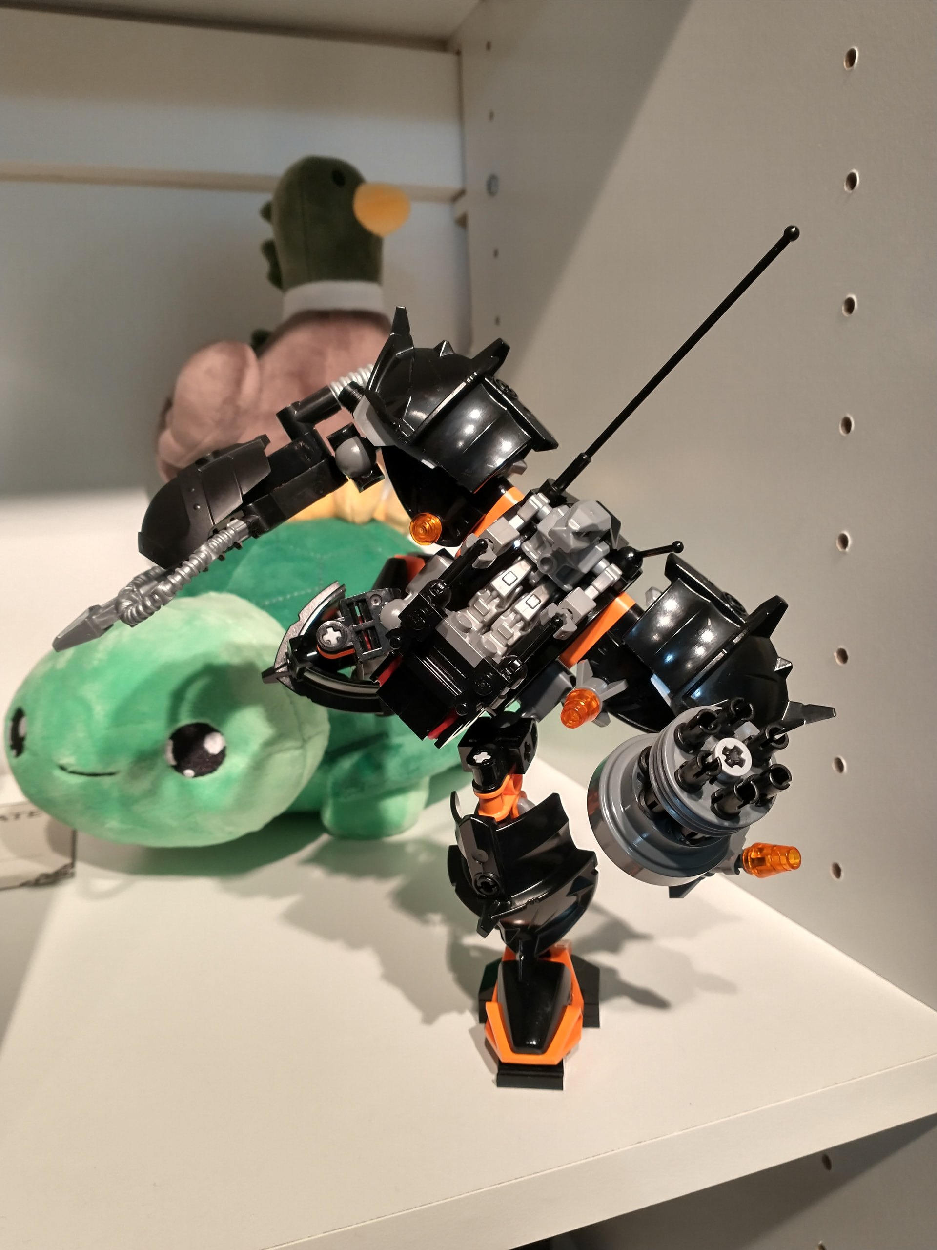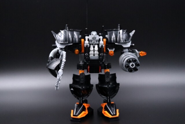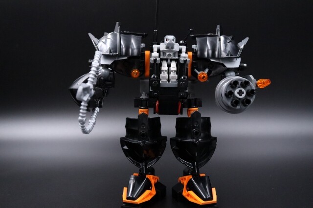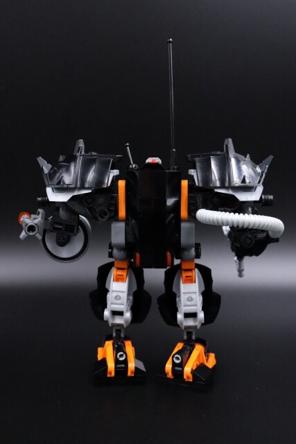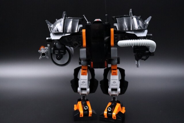 Color-wise, this thing was almost pure black for the longest time. I wanted something that wasn’t sharing a highlight color already with year 1. And since it already looked similar to year 2 sets, I also wanted to avoid that… But burnt orange didn’t look good, metallic sand blue was too drab/silver looking, lime green and regular green looked wrong, I wanted to avoid red and dark red, normal blue is too bright and dark blue was invisible. Didn’t have enough purple for that to work and yellow looked too Blacktron. So my favorite color of orange it was…And since Claw Crusher and Iron Condor are the two robot mechs that my mind defaults to, I guess I shouldn’t be surprised this is the color scheme I went with.