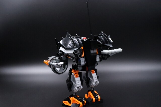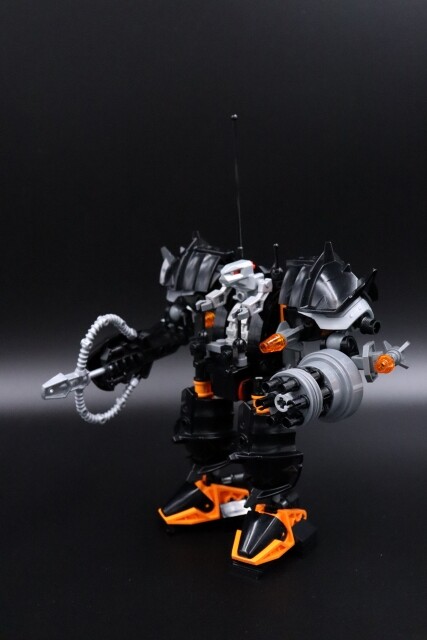 Designer’s Notes: …So what happens when someone who primarily builds with Bionicle and Technic makes a System mech? Evidently, ditch System as much as possible and stick to my happy comfort zone…Until I looked back at the old Exo-Force sets and realized that’s basically what most of them did too. It really is just some Technic, hinges, and some System coverings.