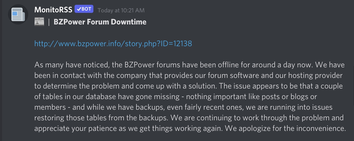 I tried to access the bzpower forums yesterday and today to