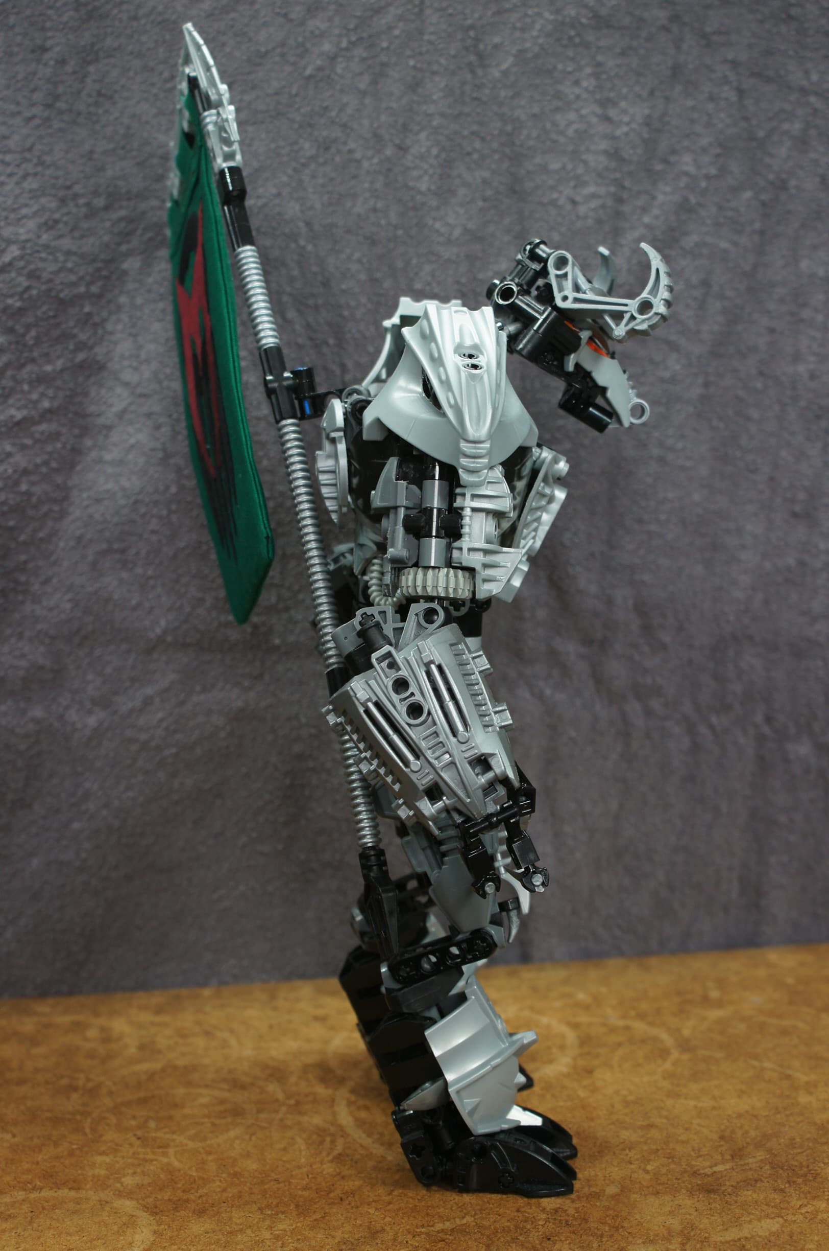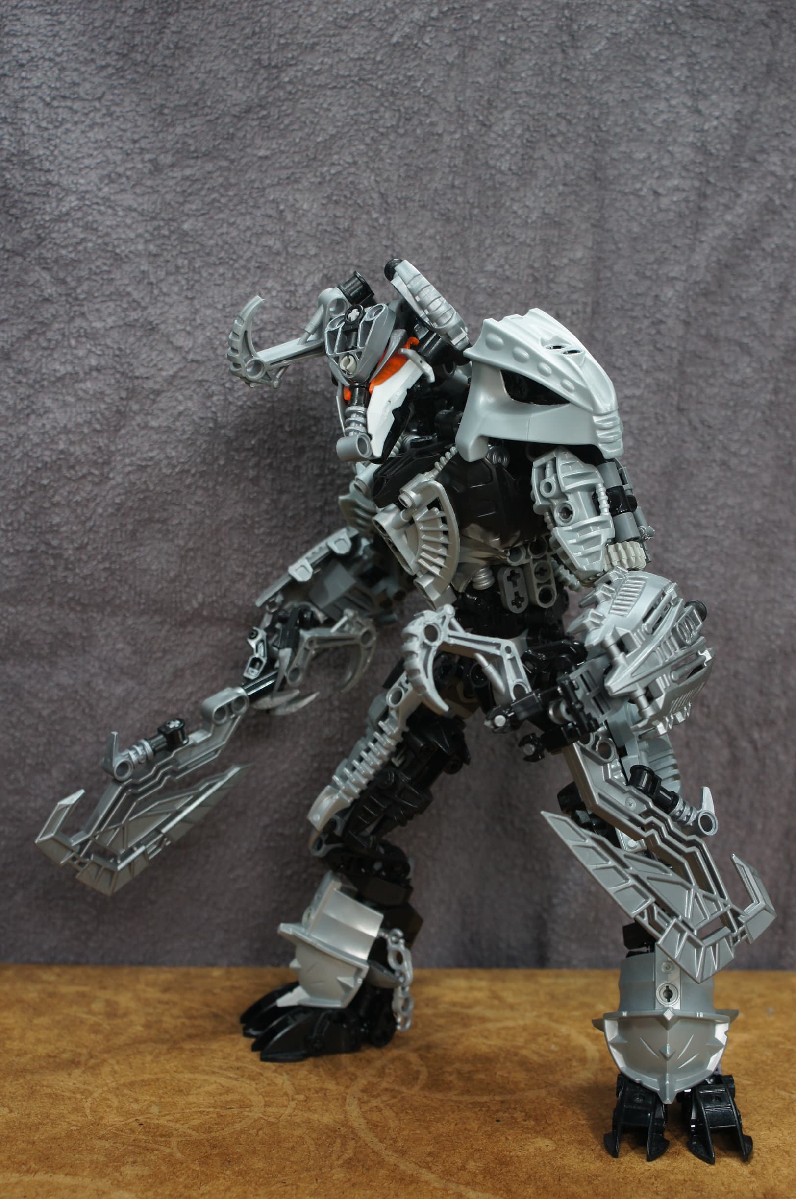 Suspended from his position as general and increasingly annoyed by how long Teridax’s great plan was taking to execute, he eventually left Destral again and under disguise formed a small band of mercenaries to partake in local conflicts across the universe. This, in time, put him in rivalry to the Dark Hunters. Something the Shadowed One never took to well. Rejecting the offer to join them (they did after all not know that he was a Makuta in disguise), he killed several Dark Hunters in a first confrontation. A situation that could well have escalated further if the Shadowed One learned that he was in fact a Makuta.