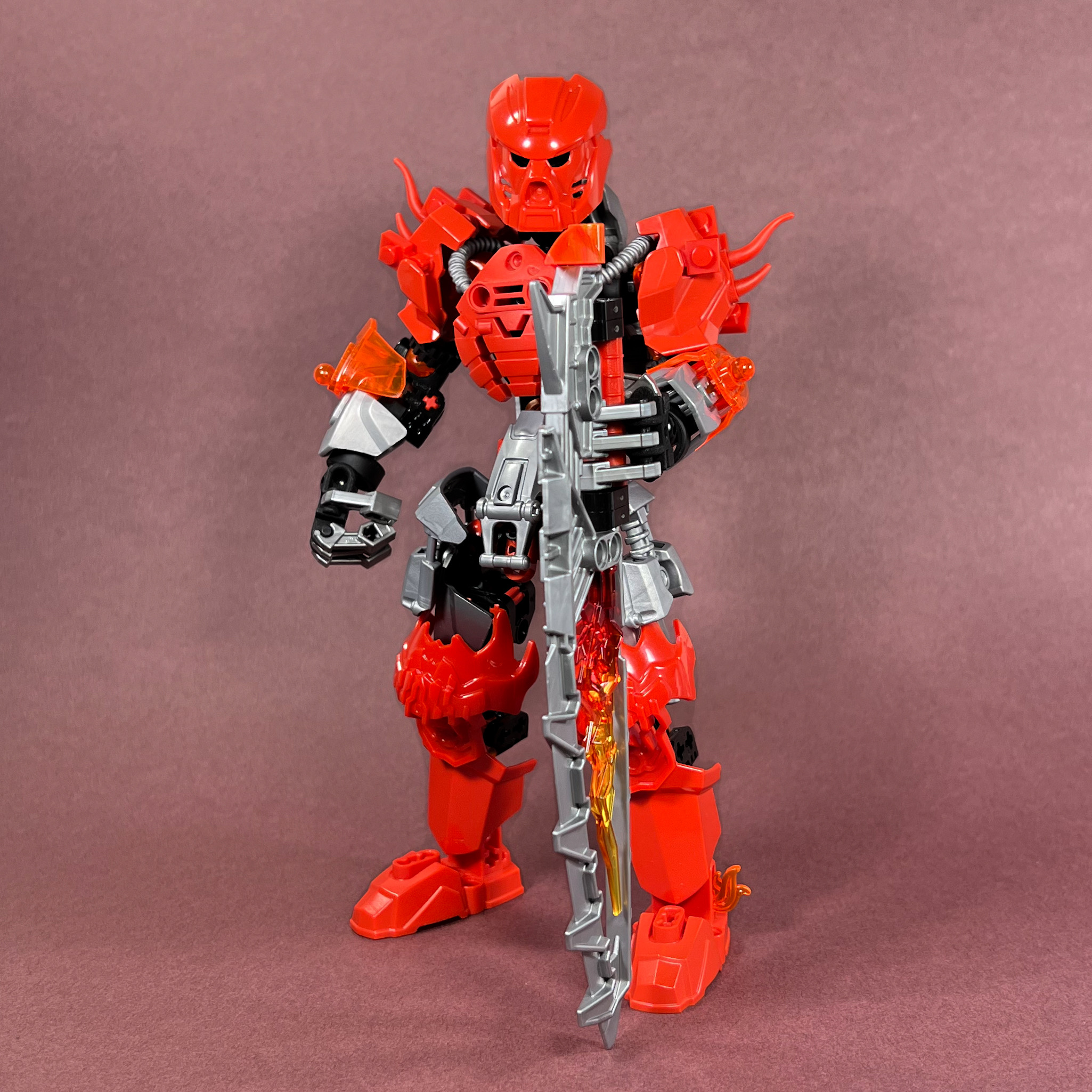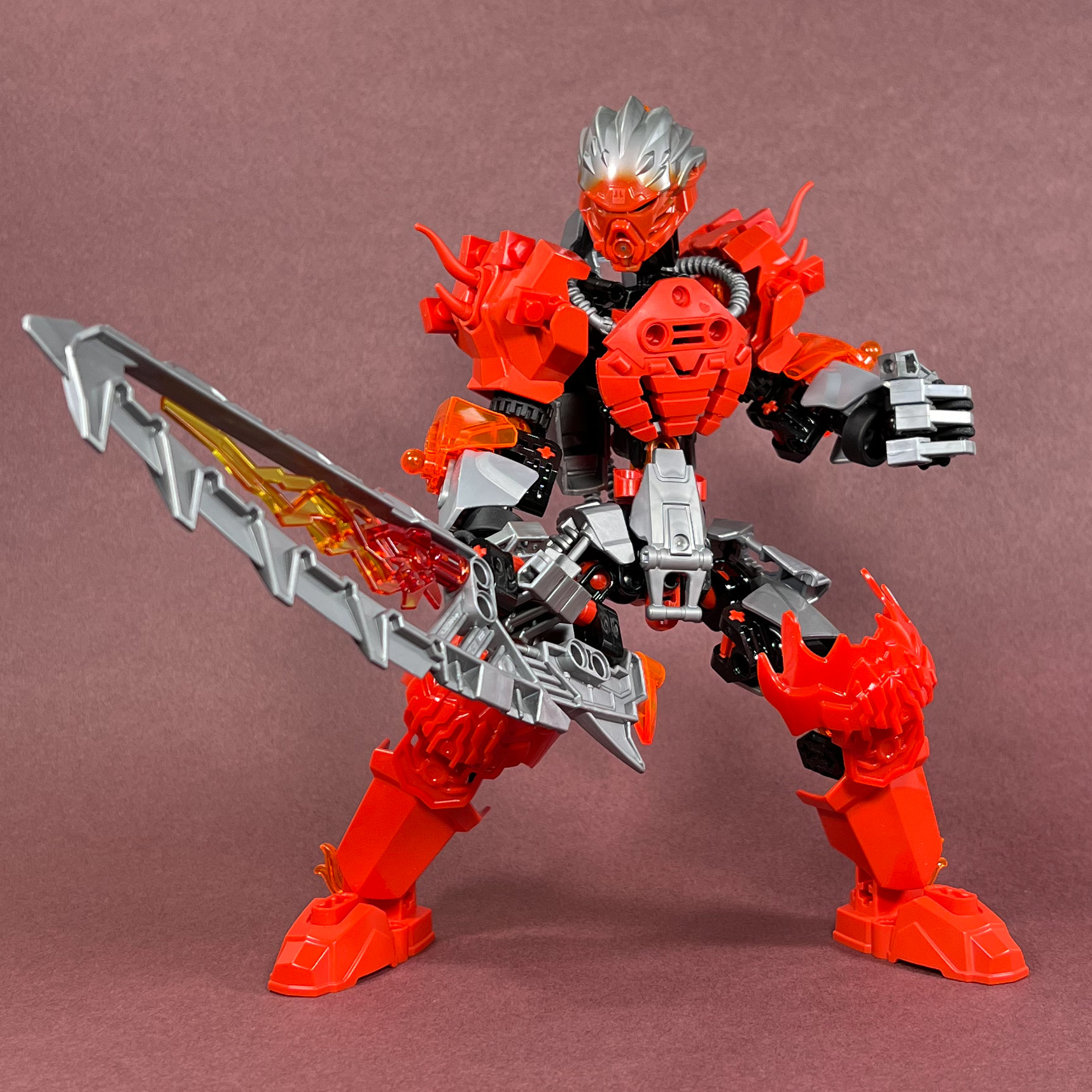 I love the brutalist design of the half-lava-board-sword. Awesome moc.