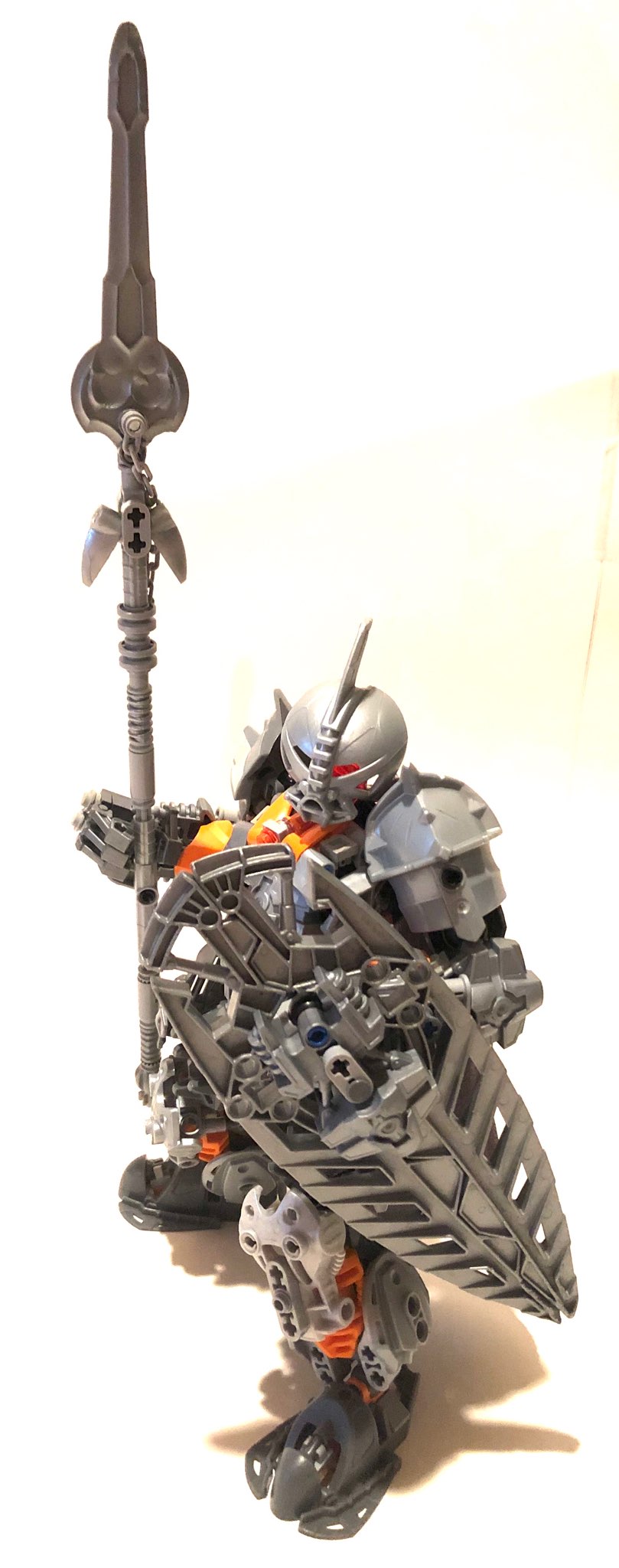 I know I said the next moc would be an HF one, but I forgot I had never taken pictures of this guy. He’s probably my favorite of my toa team so far, and really forced me to get out of my comfort zone by having to use a lot of G1 pieces as well as his larger size. An interesting technique I started using was just to first take pieces, visualize where I wanted them, and then figure out how to get them there, as apposed to the opposite which is my usual build process. He was inspired by the General class from Fire Emblem, Path of Radiance, though the black pins sticking out of the shoulders do bug me a lot. Overall, I’m super pleased with how he turned out, constructive criticism appreciated. and yes I know he looks more like a toa of iron than a toa of stone