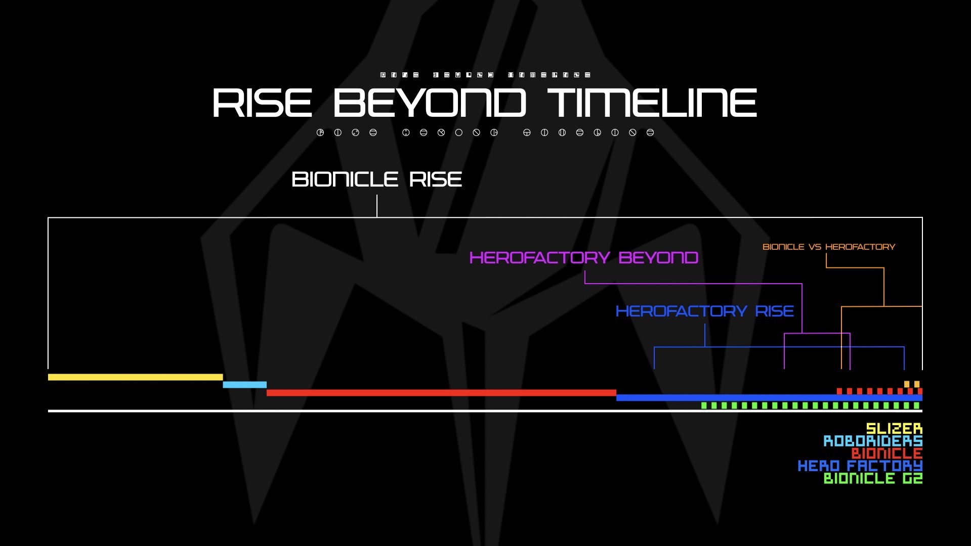 HF RISE covers the history between BIONICLE RISE and HEROFACTORY BEYOND. Witness the birth of the FREEDER, purpose of the HERO FACTORY, and the origins of the G2 BIONICLE!