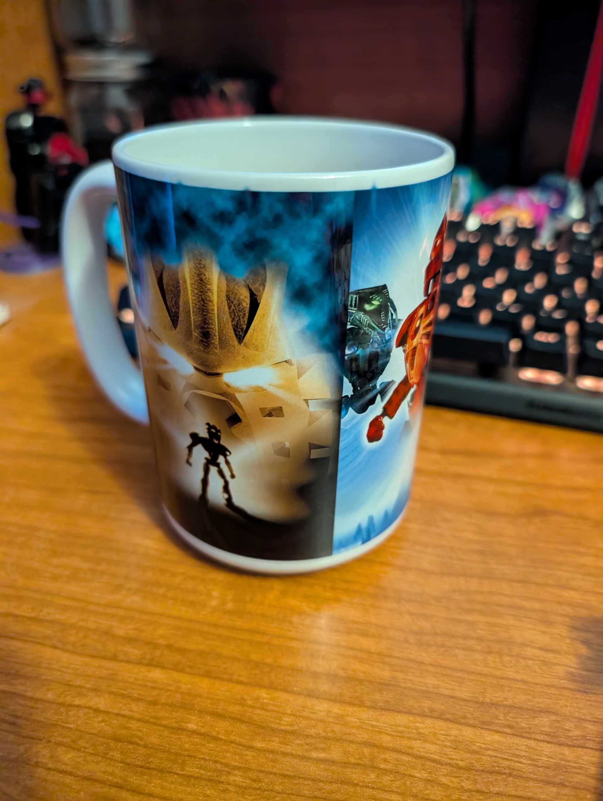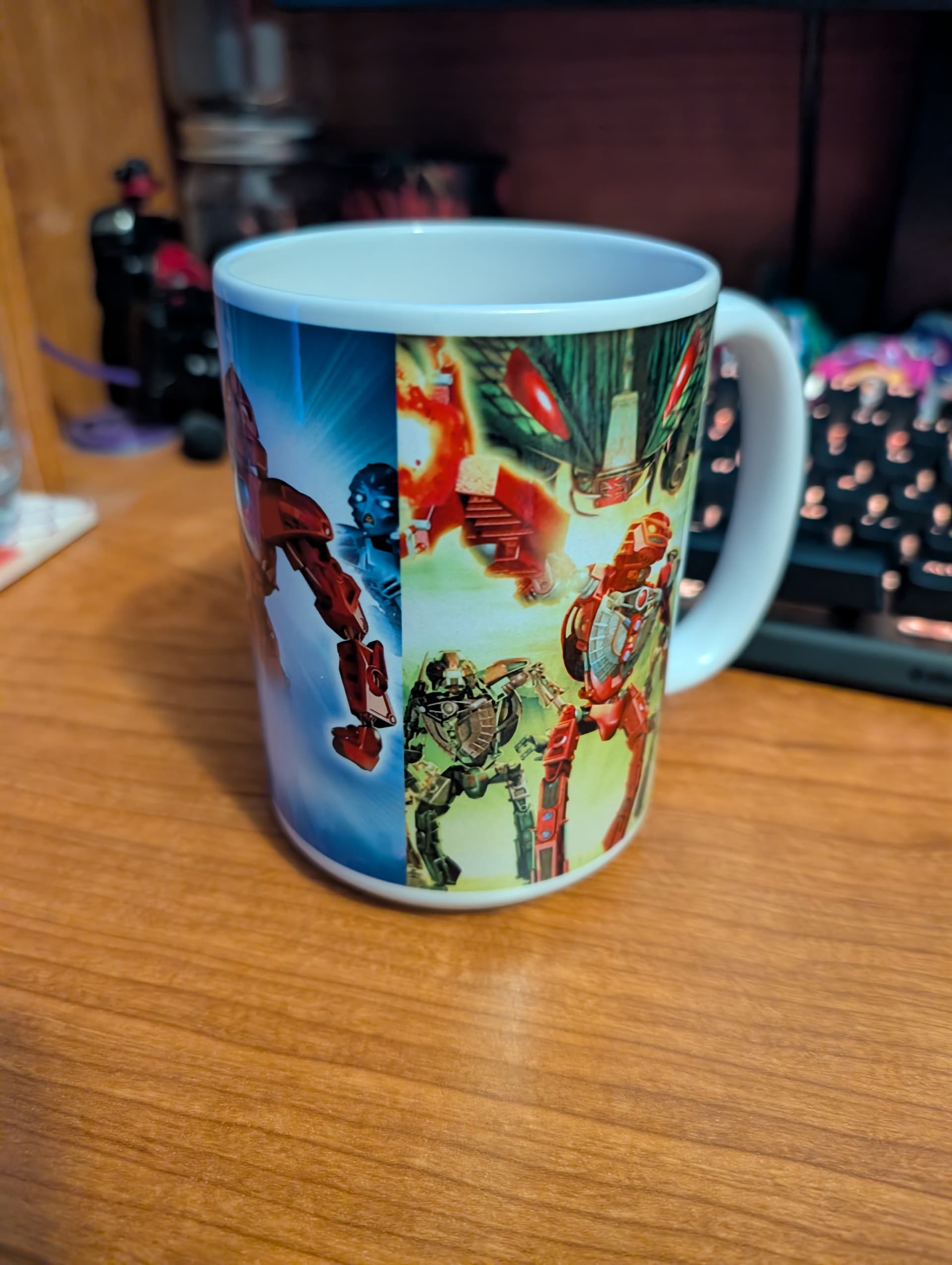 I find a high-quality poster of the Bionicle motion pictures on a mug to be fascinating.