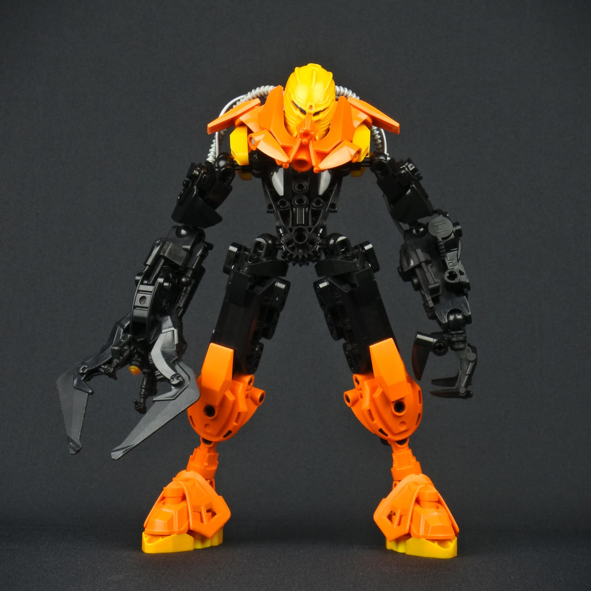 This brave Toa survived an agressive encounter with Makuta Miserix, but got struck with the power of the mask of mutation while in fight. His red body turned ash black and his flamethrower weapon fused with his body.