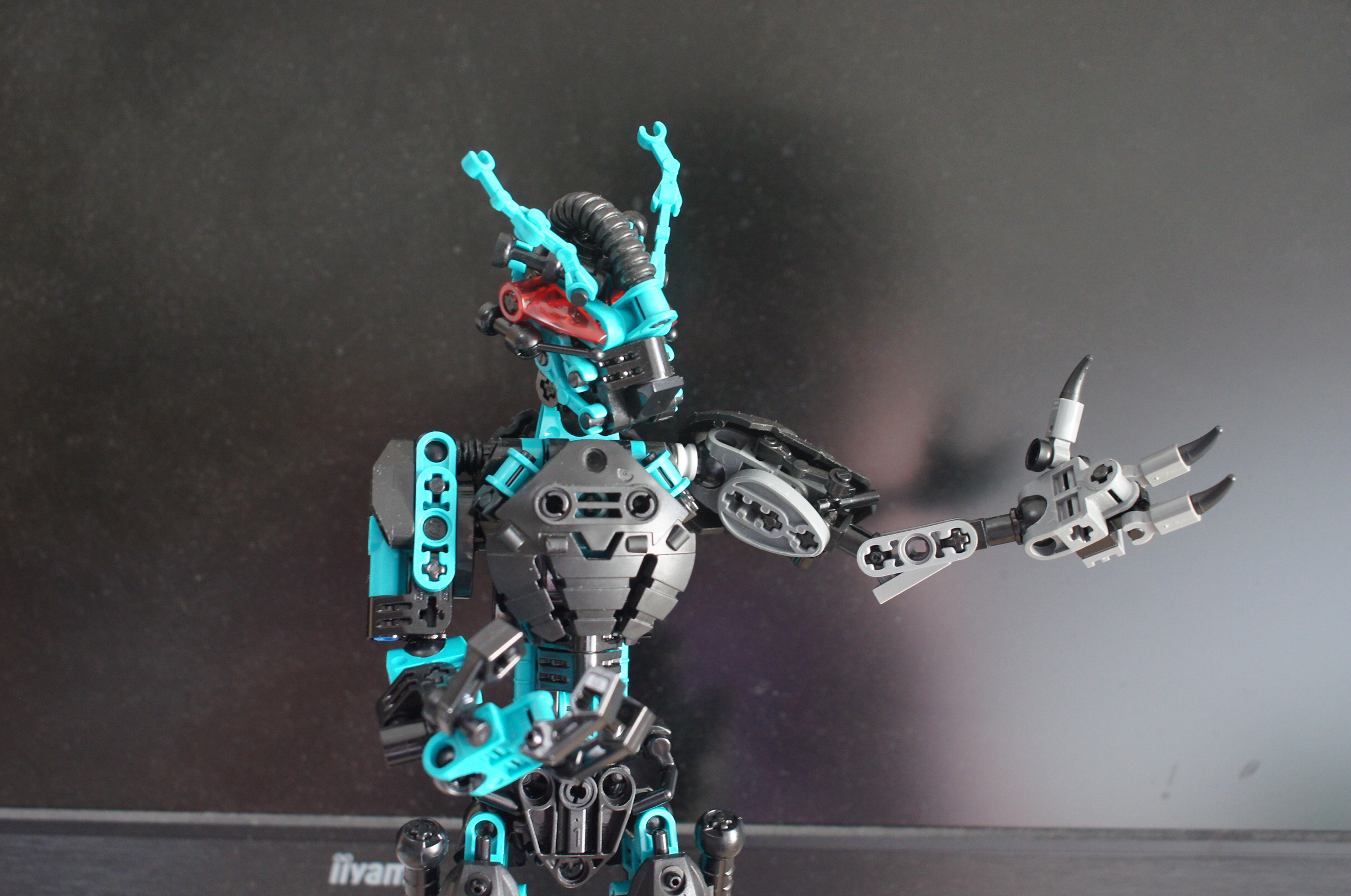 Yeah, basically this. Skin doesn’t really exist in Bionicle, everything that’s not organic tissue is basically armor to some degree. Also, of course, large teal parts are scarce and distributing the colour over the entire MOC adds to the overall look, in my opinion.