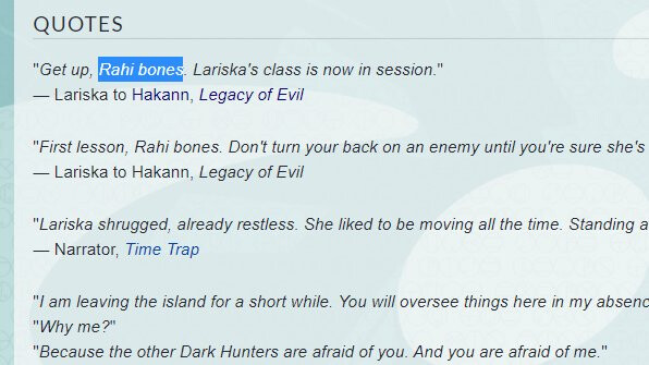Notes : A Dark Hunter who feared by other members