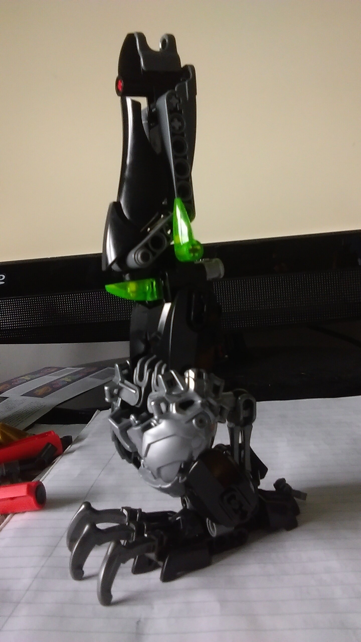 Ok here’s my pile of parts that should represent Makuta. I don’t really like how it turned out (but it may just be that it’s my third CCBS MOC ever), but the size is pretty impressive, and in my opinion the lower legs are great.