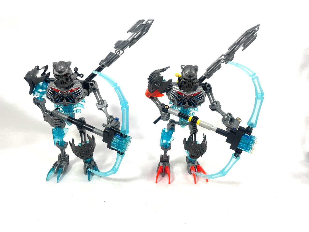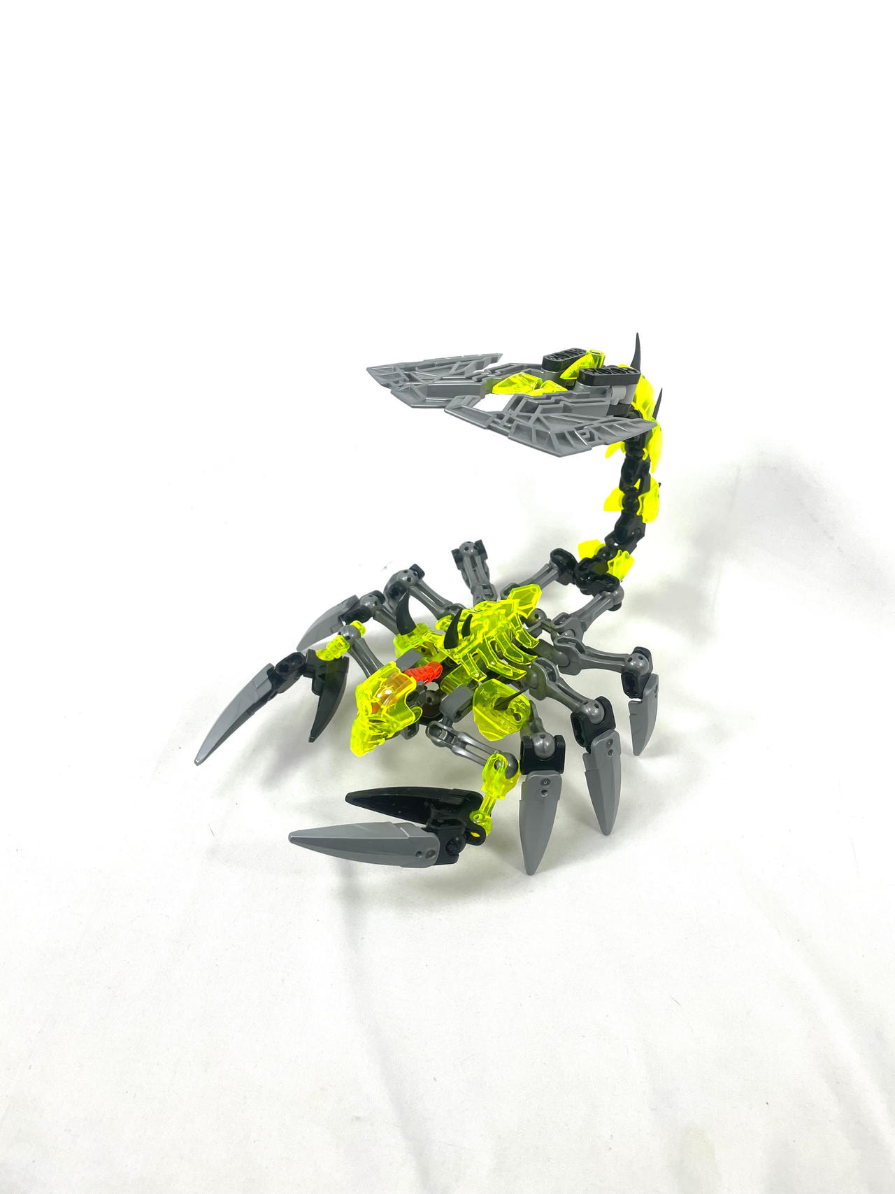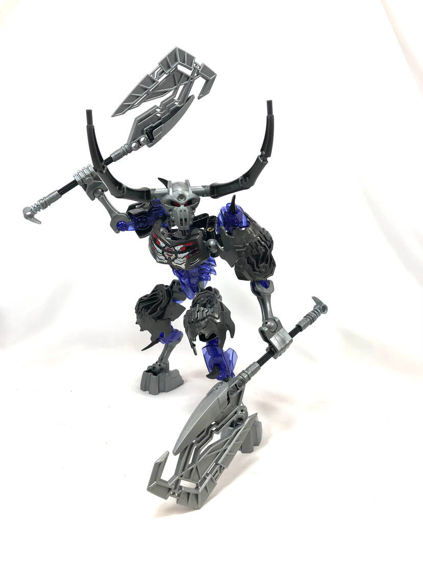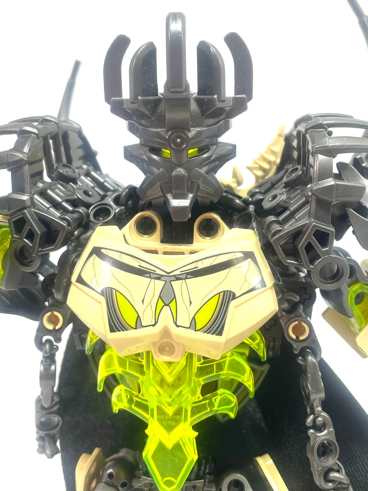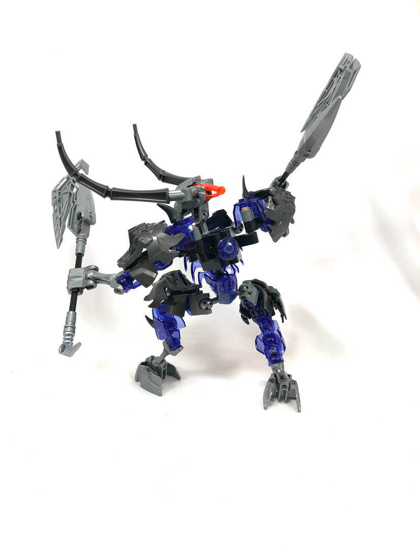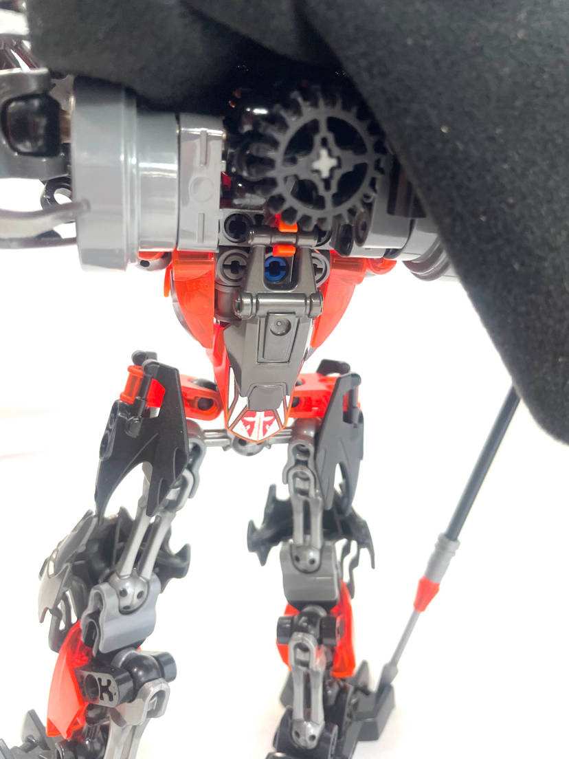 Thinner armor on the shoulders, using a clever design I came up with for fastening Bionicle armor to ccbs shells. I covered the bare ball parts on the frame, I always hated them leaving the normal bones empty.