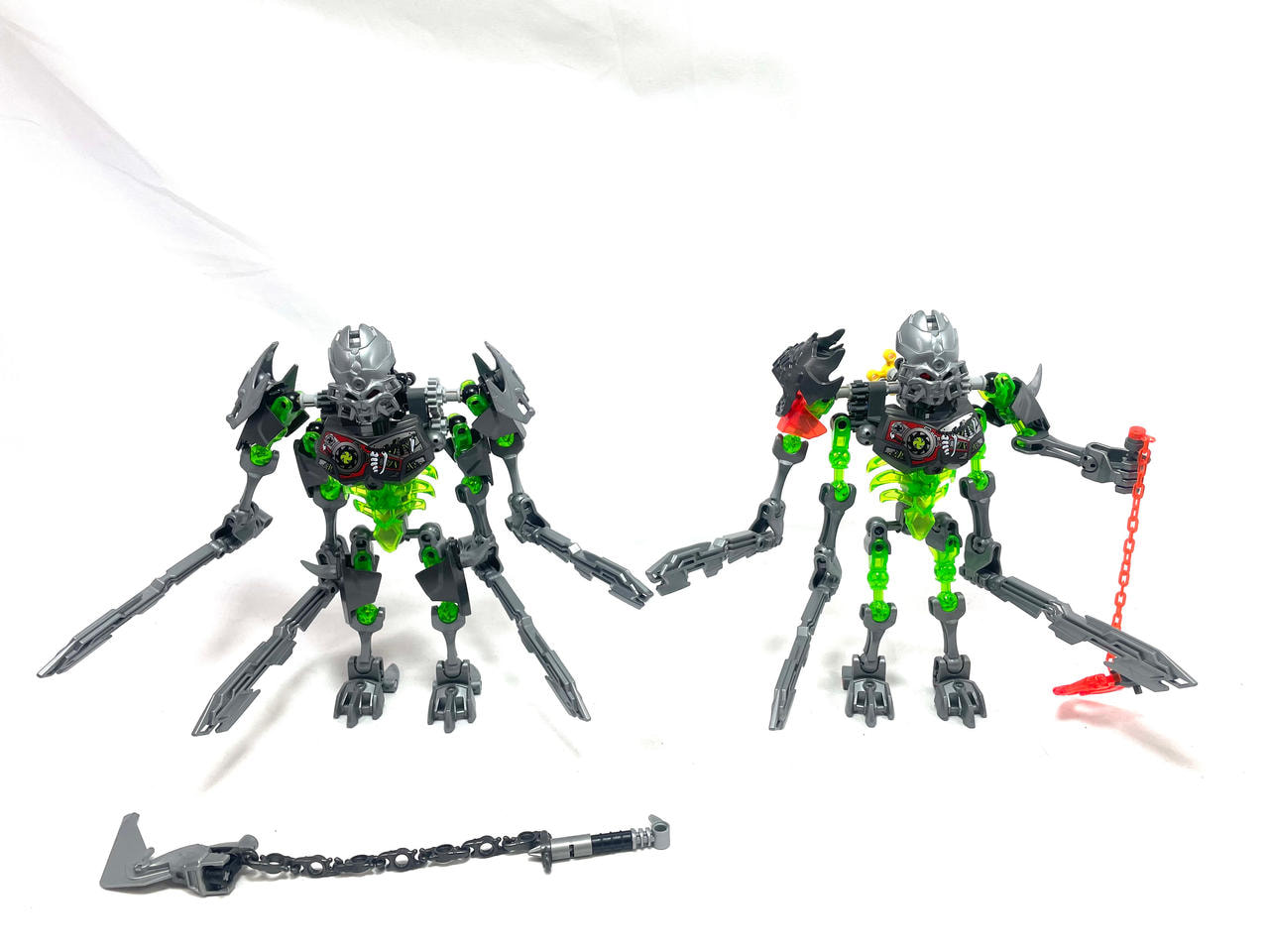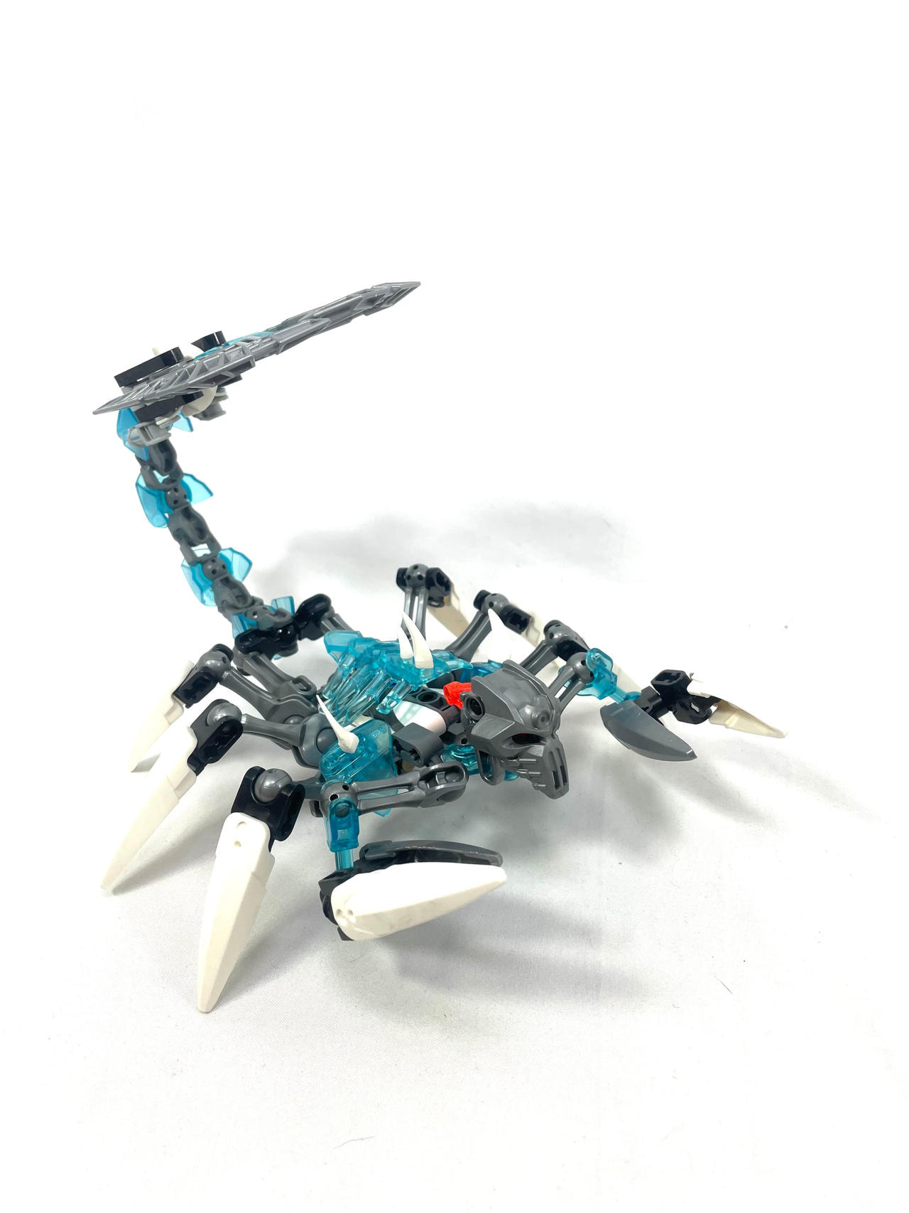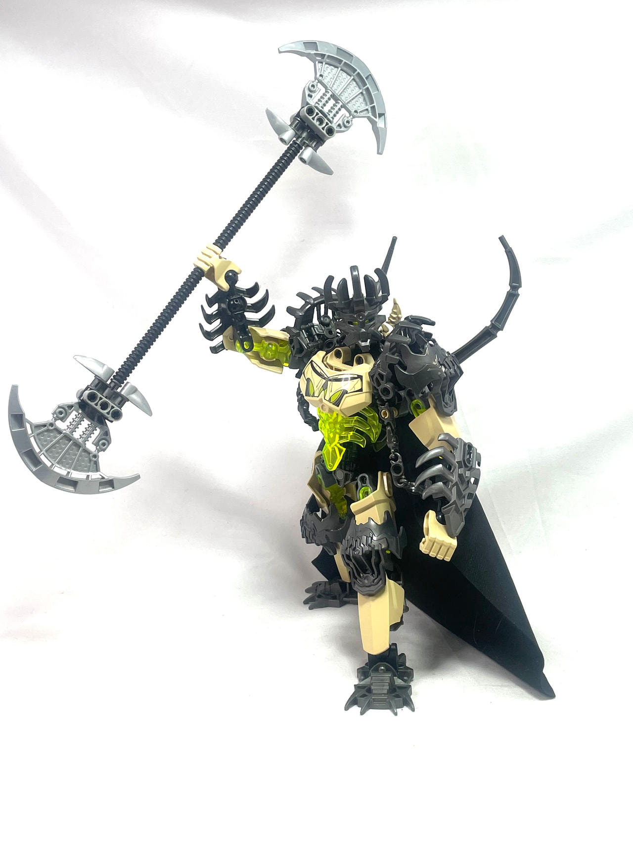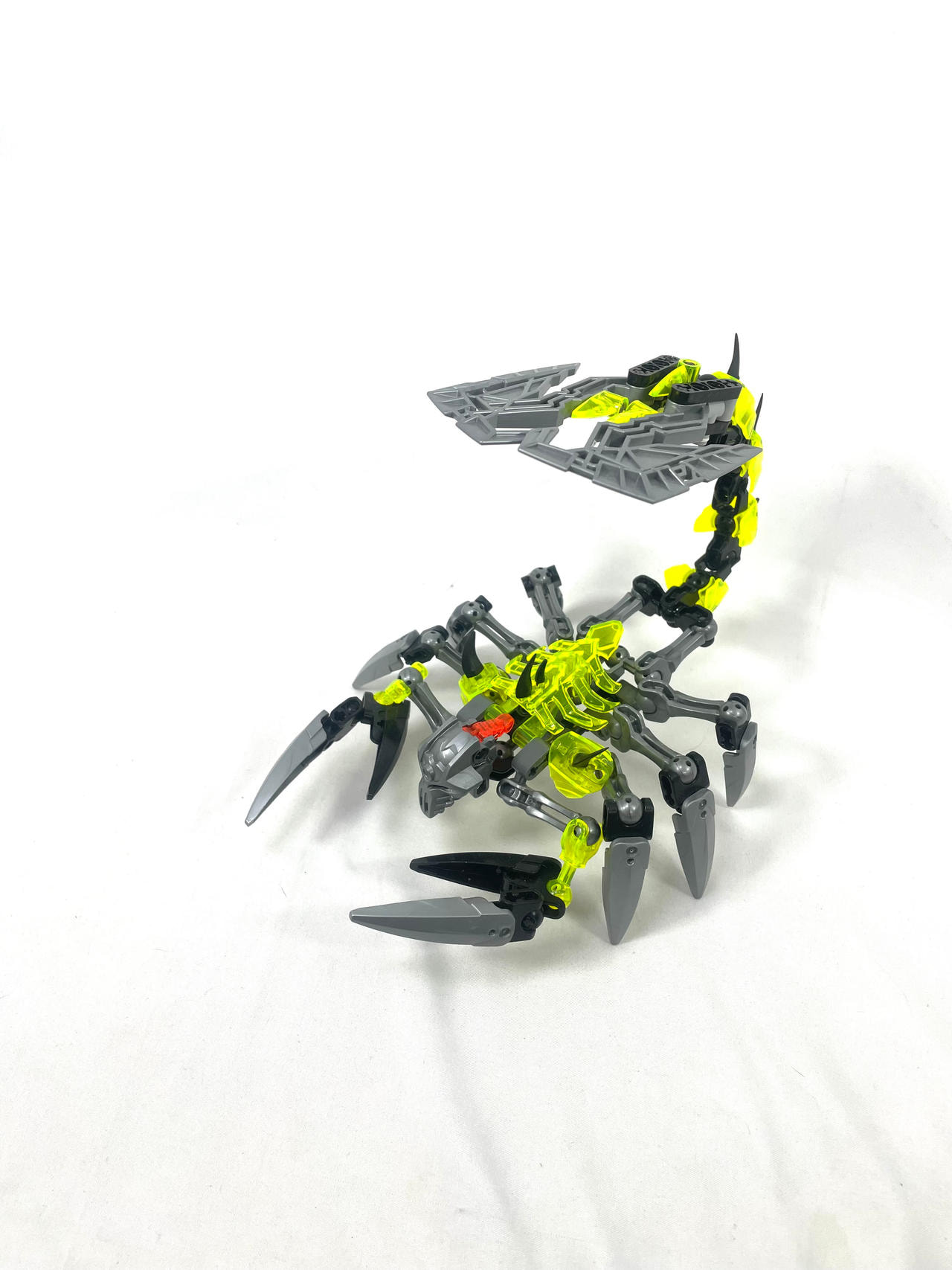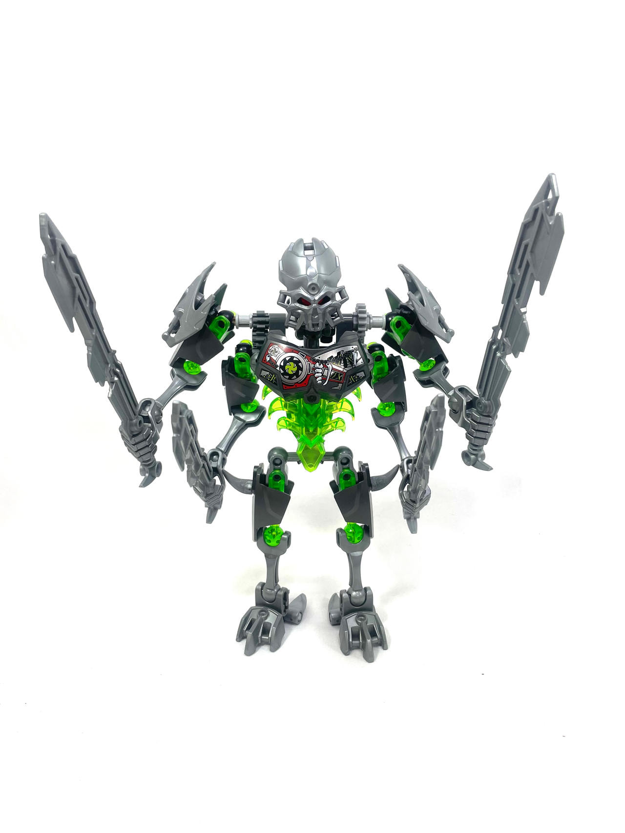 Thinner armor on the shoulders, using a clever design I came up with for fastening Bionicle armor to ccbs shells. I covered the bare ball parts on the frame, I always hated them leaving the normal bones empty.