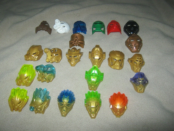 Here’s my collection thus far. As you can see, I’m missing four G1 gold masks, and of course they never relased trans-melded versions of the 2015 Kaukau and Hau, and I have yet to purchase Onua Uniter. Still, despite these gaps, I think I have what I need to talk about the differences between these masks.