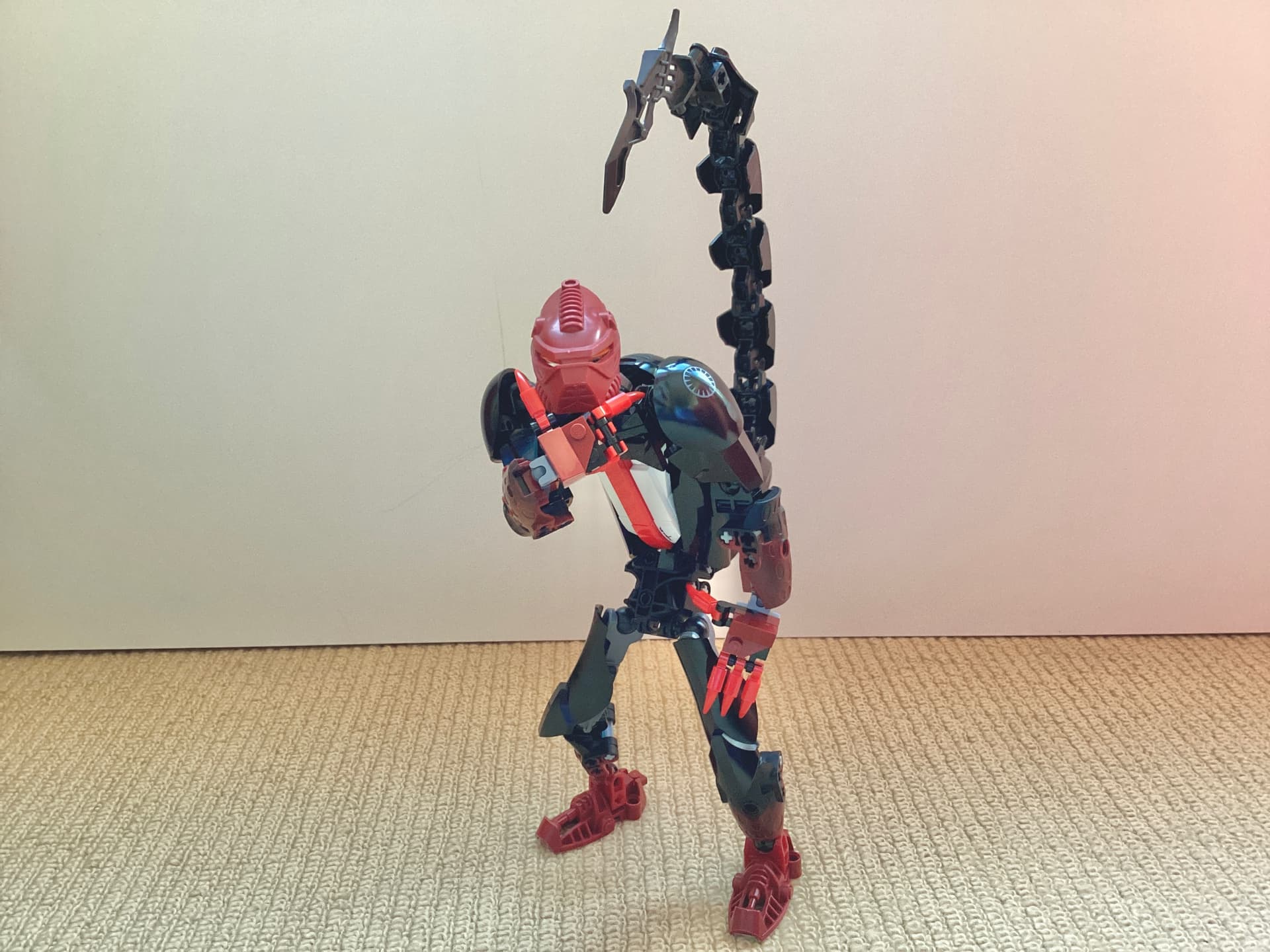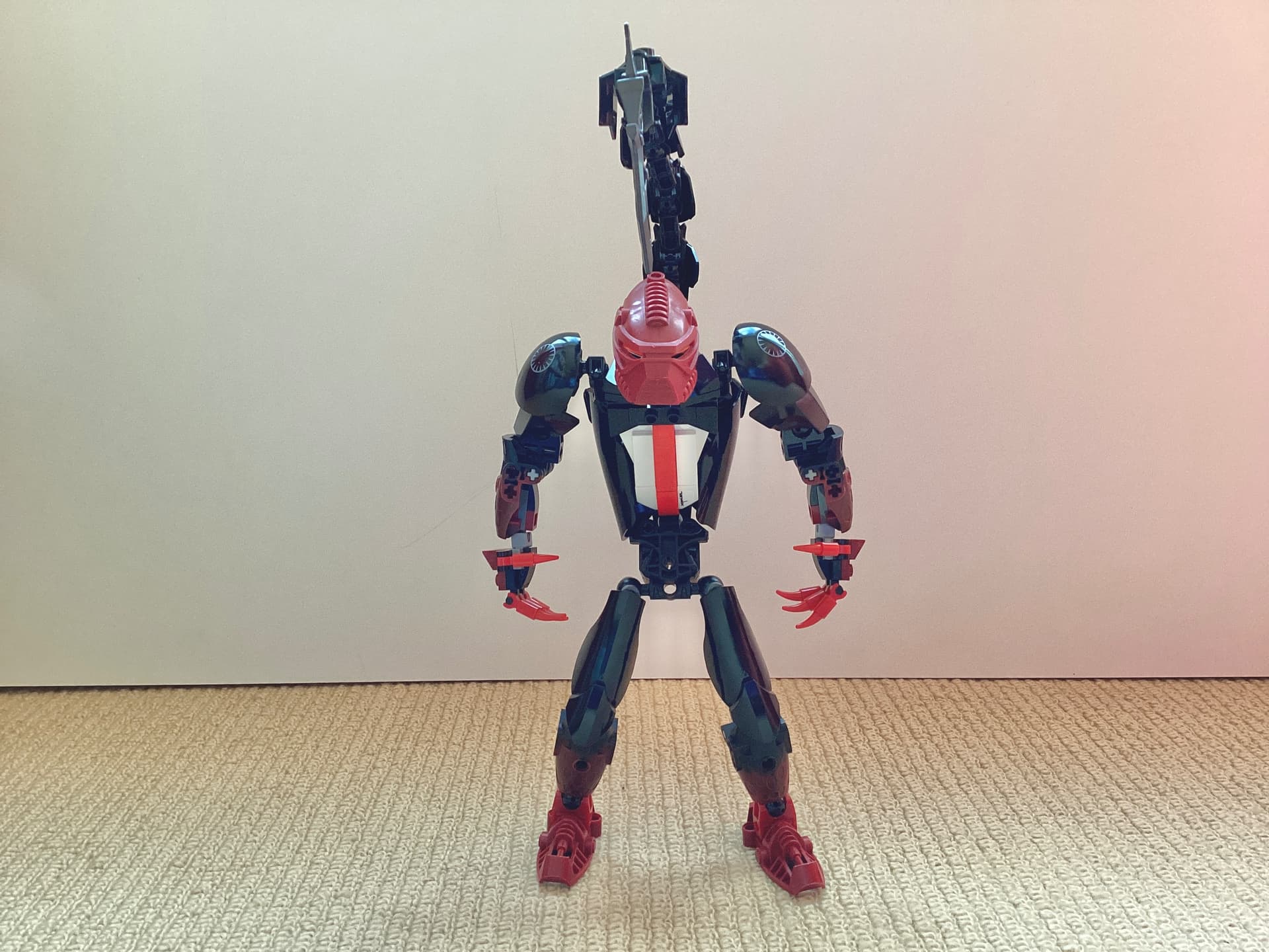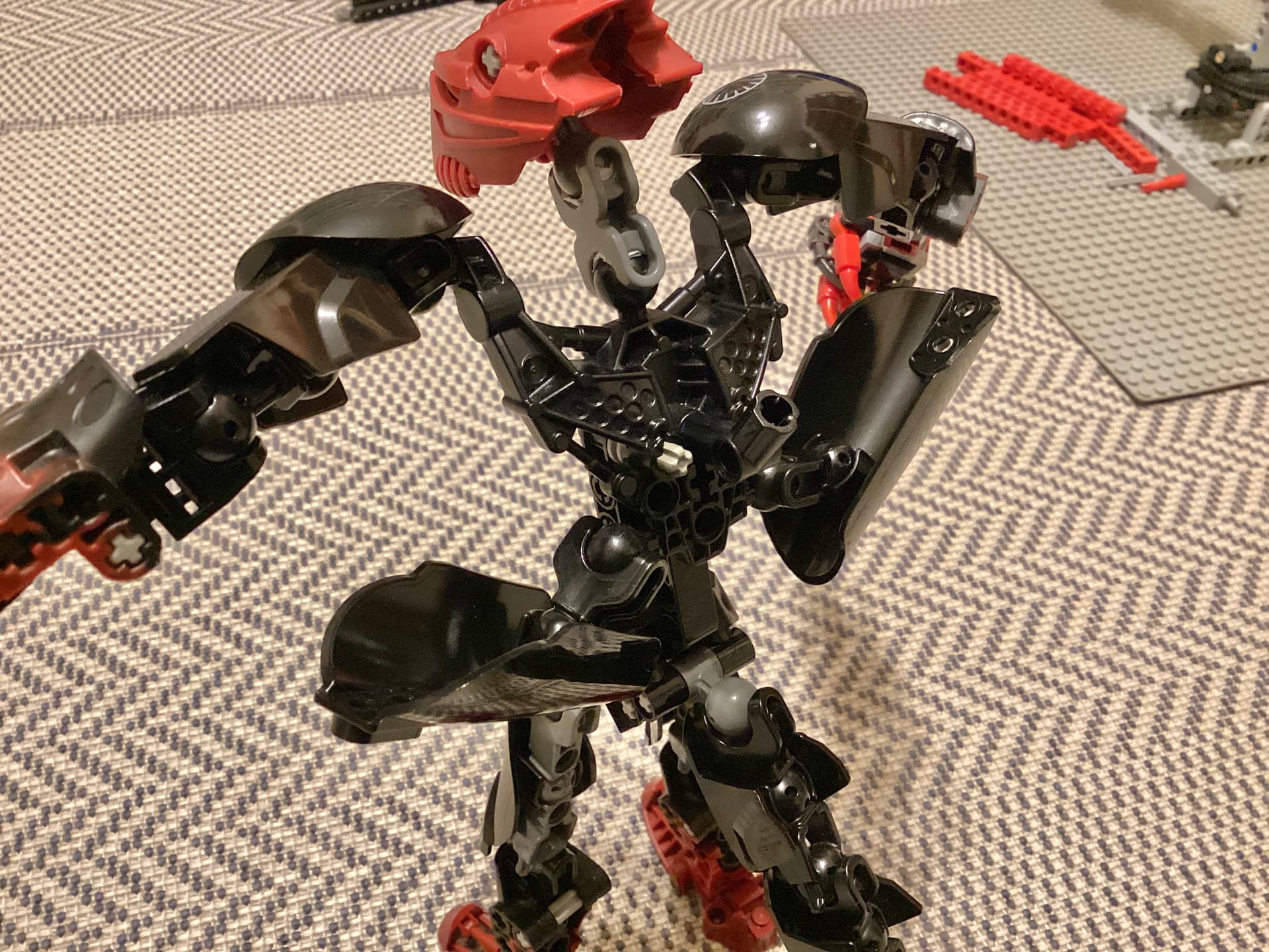 That torso design is very clever, is that an av-matoran body I see hiding in there? Really captures the gamer hunch of the original design. Maybe I’ll get around to posting the newer version I made recently…