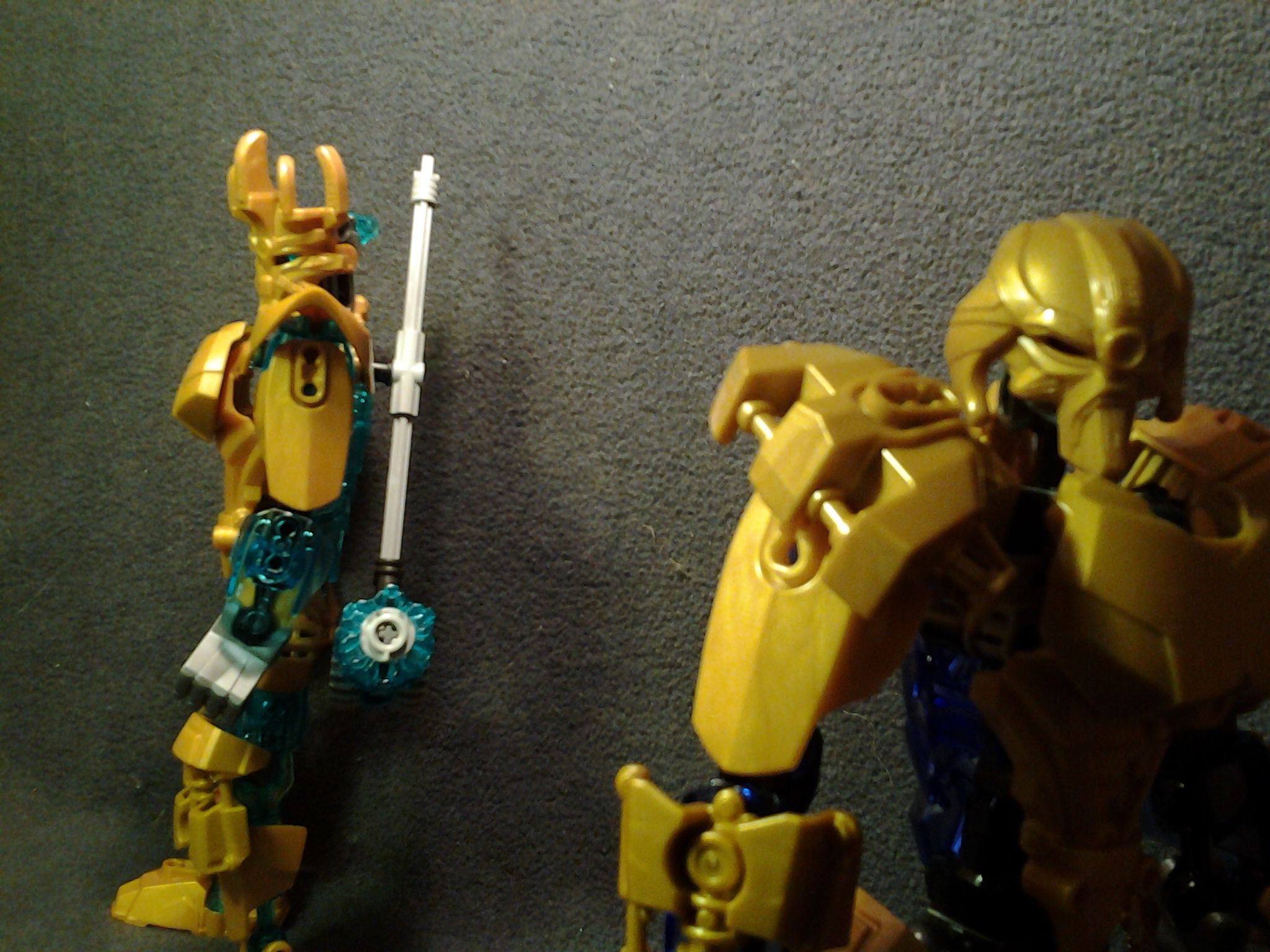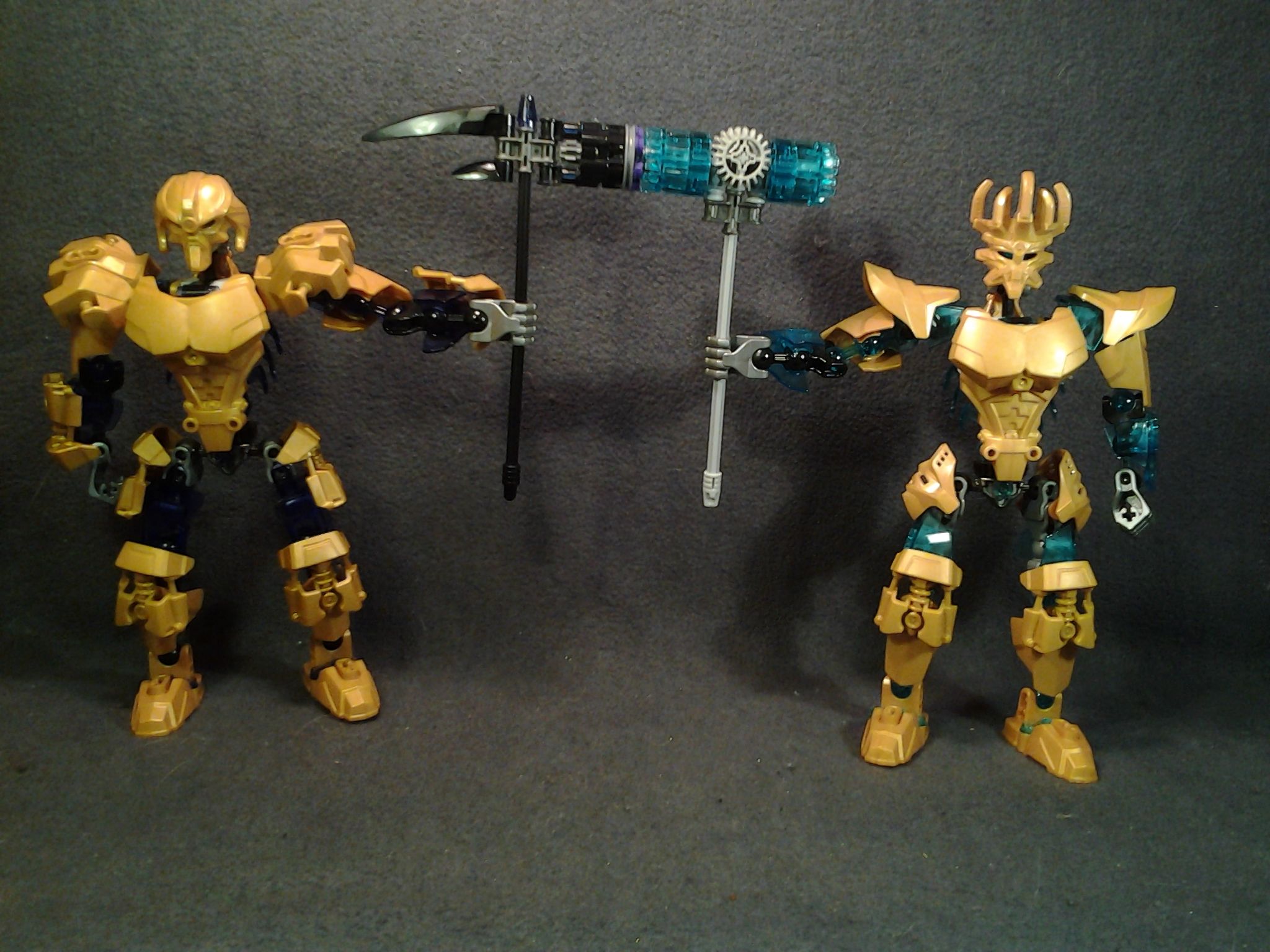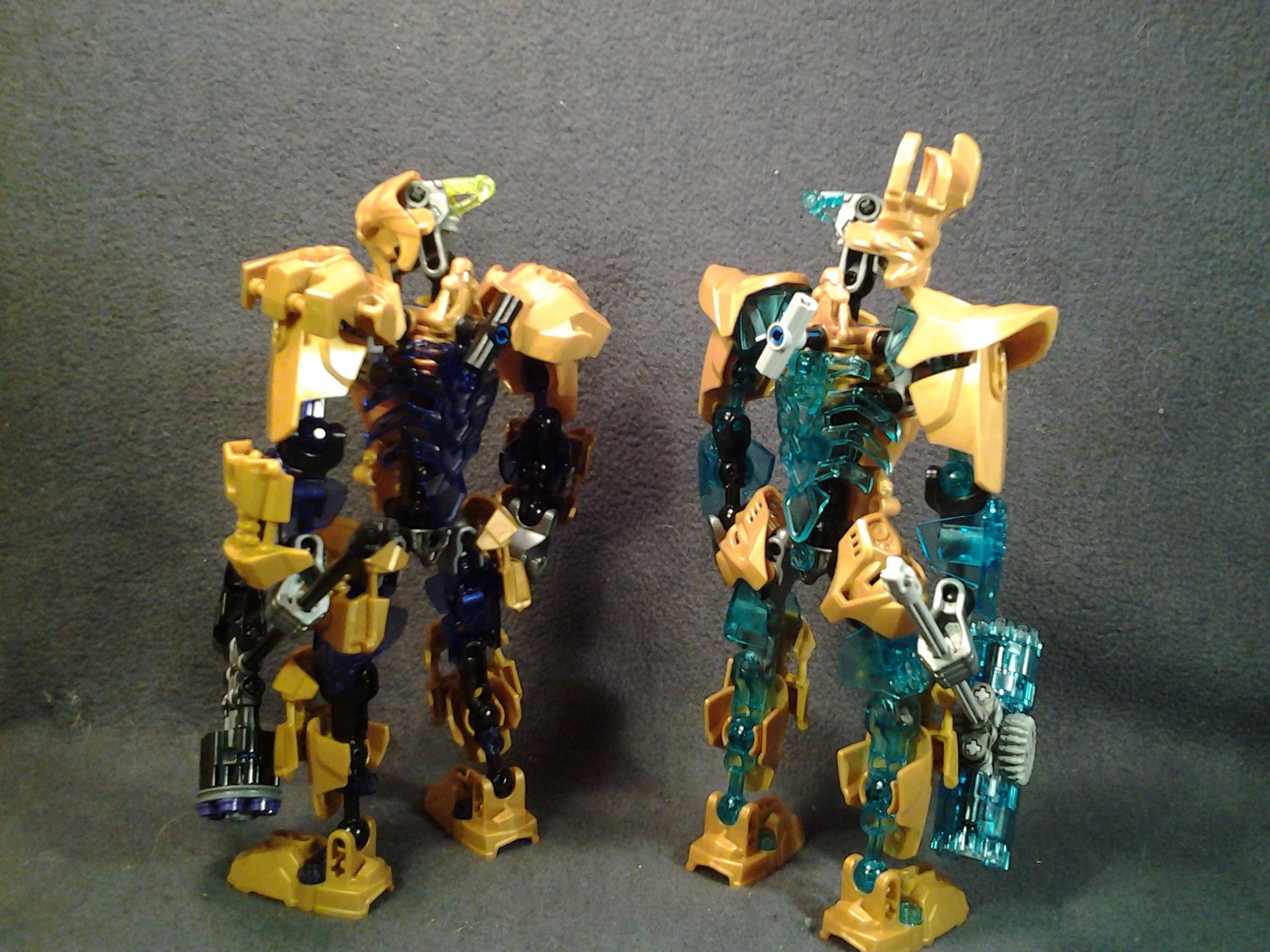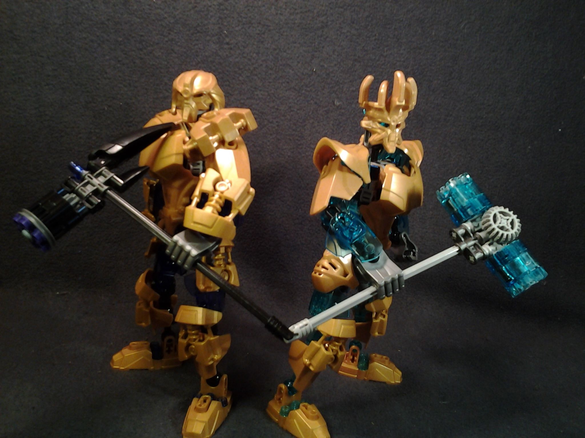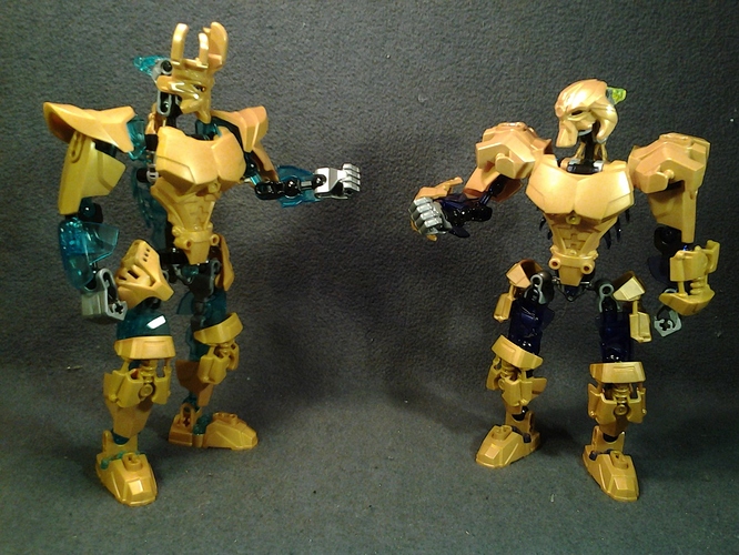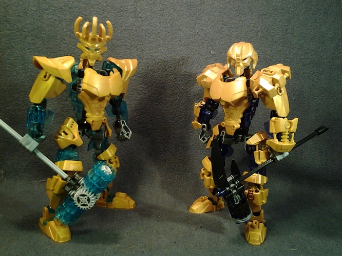 They both need more of there trans colors, and Makuta’s shoulders are a little to bulky in my opinion (almost like he’s wearing a winter coat), I think the golden version of the skull villain add on would work better. Other than that, they look great, especially what you did for Ekimu’s hips, very creative.
