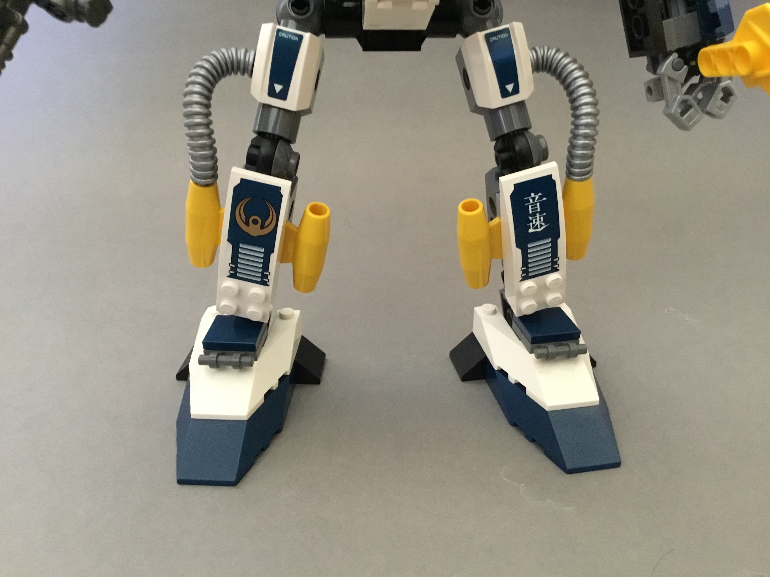 The legs remain the closest to the 2006 Battle Machine frame, with the thighs completely identical to the Stealth Hunter and the shins looking fairly similar save for the yellow jet engines. Hikaru’s symbol is now gold to match his new armour, while the Japanese text now reads ‘Speed of Sound’. The feet, however, have doubled on size, making the model much more stable. Some could argue they’re a bit too big, but they look a lot worse without the extensions.