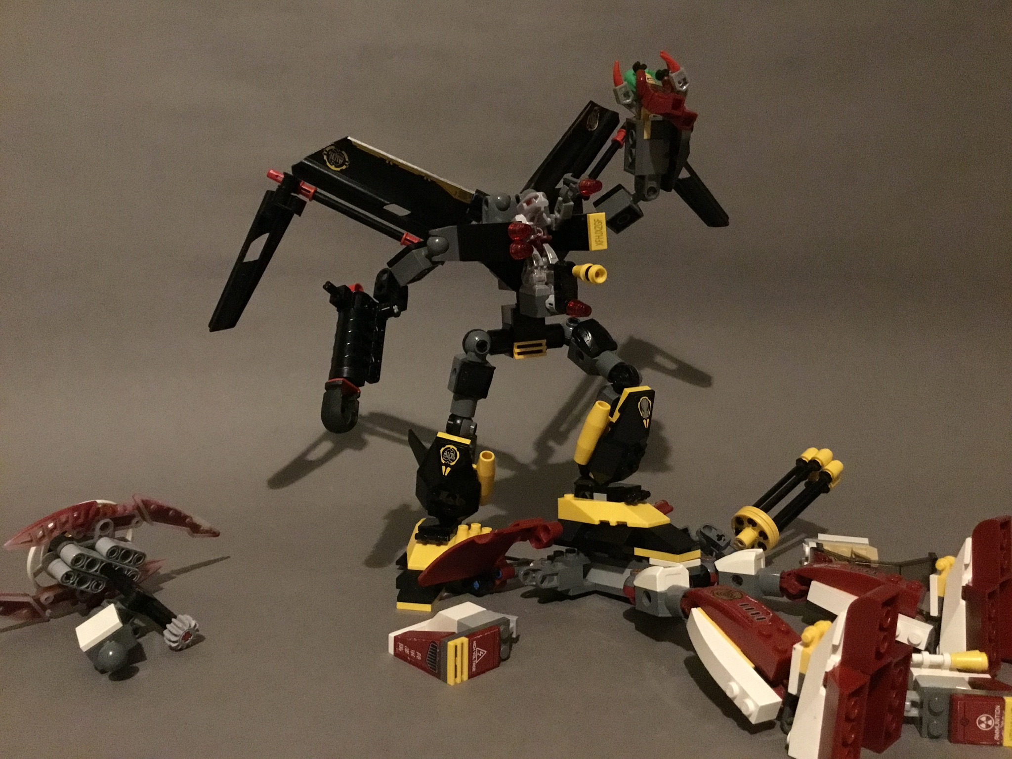 Now, onto the prices. These both retailed for the same price as last years mid-range offerings, £9.99. This still represents great value, providing a suitably fun experience. On the secondary market, however, these sets are now worth £18 each, ruining the previous price-per-piece ratio. £18 for the Sky Guardian? Pass. Conversely, I’d say £18 for the Iron Condor is still a good price, due to its impressive design and functionality. In fact, the Iron Condor is, without a doubt, my favourite Exo-Force set of the entire series. Not the best, that honour goes to Sentai Fortress, but my personal favourite. It’s so fun to mess with, and the waist swivel gives way to a whole new world of posing options. It looks suitably menacing, it’s durable, it’s stable, it’s playable, it’s displayable, it’s functional, it’s poseable, it’s basically everything you could want from what’s essentially a Lego action figure. In fact, here’s a bunch of poses I came up with simply because I just couldn’t put it down: