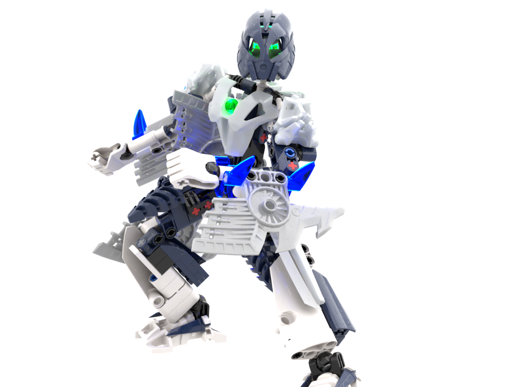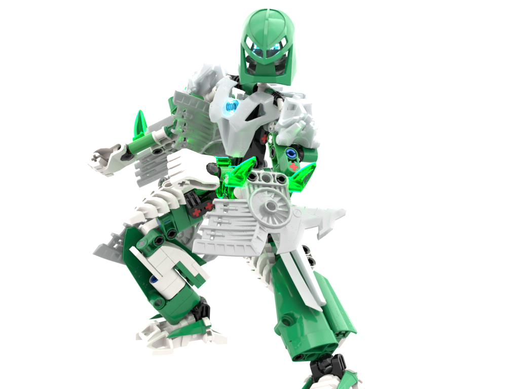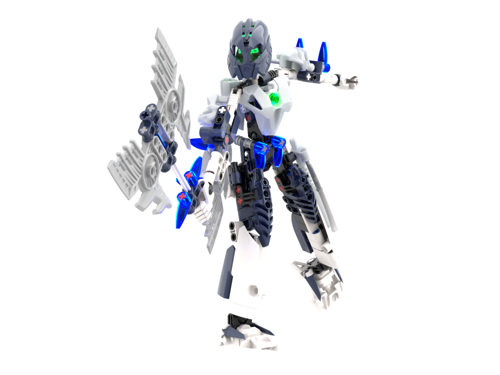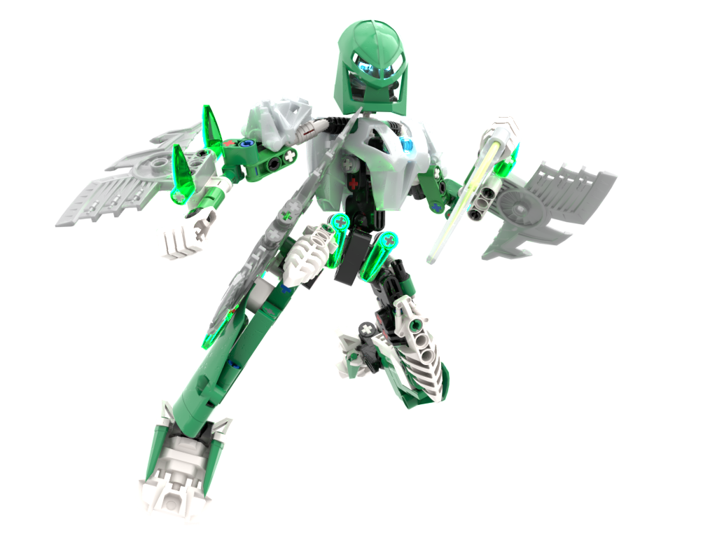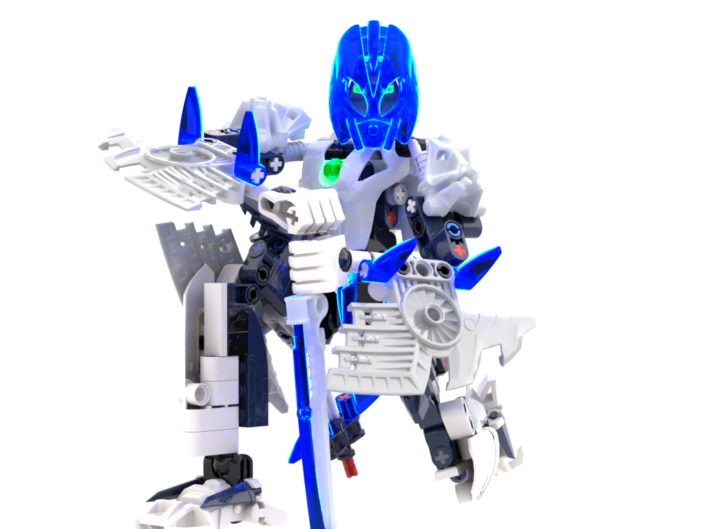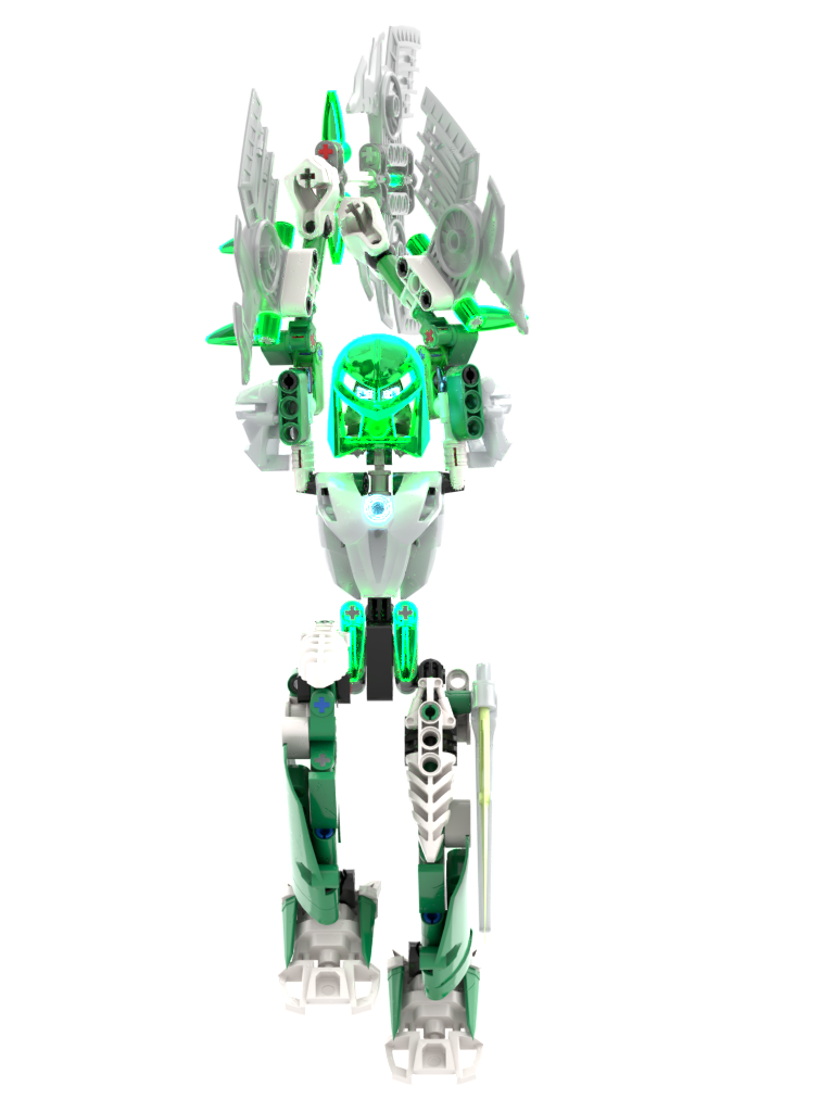 Why is he able to switch colors? Well my favorite color is green, but the first version of Ocari was dark blue and my 2 favorite masks are the Miru and Tryna so I decided to just give him 2 modes called Tryna mod and Miru mode. Also his Element doesn´t change based of the form, that said I also don´t know what his element is the tryna form suggests water or lightning unfortunately I´m a guy and Ga/Vo-Matoran are female(this sound a lot more sexist than it should be), Miru form suggest air and plant life, actually plant life would make a lot of sense since they´re green and blue, my problem that is that Miru form would then be even more Lewa than it already is, maybe ice because white is the secondary color of both forms, or maybe he just isn´t a Toa
