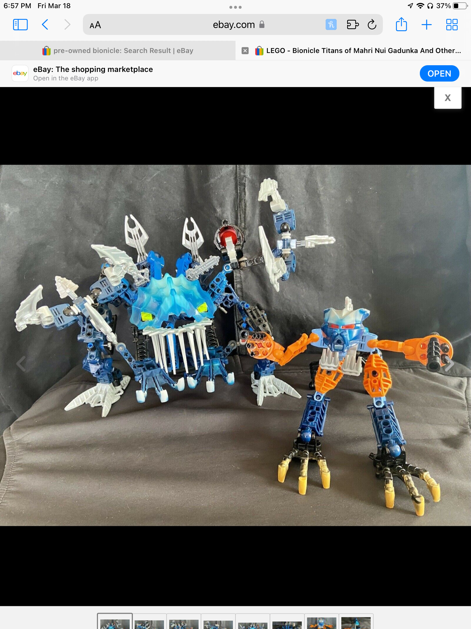 If you want a good deal, look for pre-owned Bionicle sets on Ebay. It’s how I got Jaller Mahri and Nuparu Mahri for only $30 apiece! And I also saw a guy selling Maxilos as “Bionicle Parts Lot” for $20. Not sure what the shipping is but it would be worth buying, as it has all parts: just looks like he did in the comic after being smashed in the Pit.