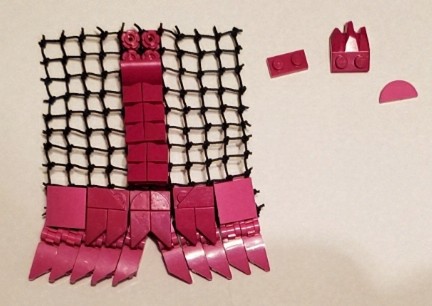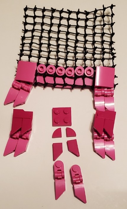 I just want to say that I did mess up at the bottom part of the cape, but I did find it in the middle of taking pictures. When building, make sure the net knots are In between the the one by one studs.