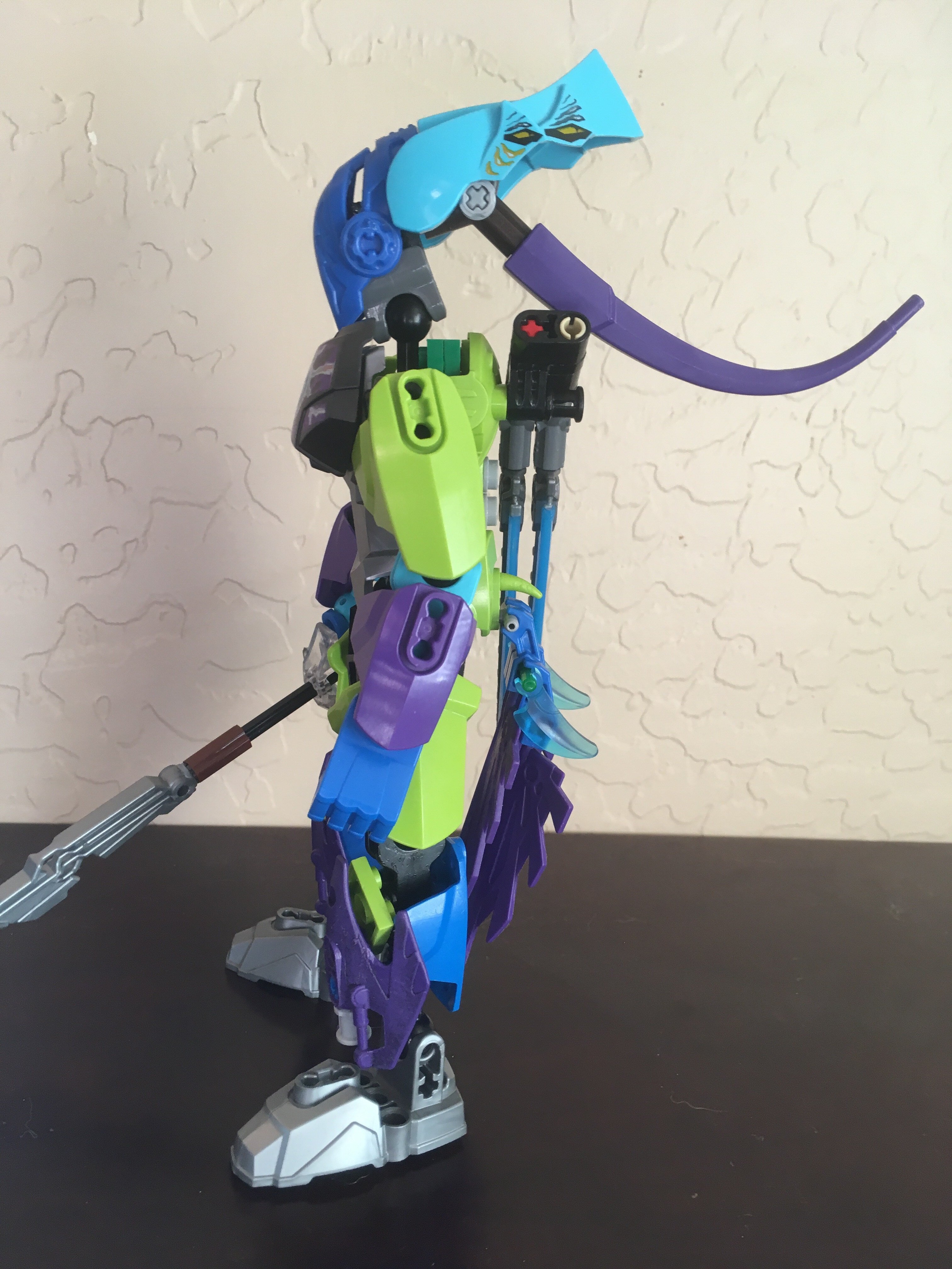 @Gringat the feet and torso armor had been replaced to fill out more and make a silver highlight. The pieces making coverage on the inner thigh had been replaced with small grey studs and two black one by two plates, and to also help blend the color scheme, I put two grey one by one studs on her back. I also changed her tail piece, gave her a long sword, changed her twin weapons slightly, and gave her a weapon holder on her back. Sorry I couldn’t improve the head by adding a colored pop socket or colored three axel hole hand, as I don’t have any pop sockets in color and the three axel hole hands in color I have are little to none and most don’t work with the pop sockets because their the old style of bionicle hands