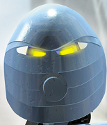 It retains the translucent quality if you keep the eye shield attached to the mask, it’s Metru blue, it can be greebled up a bit, and it can give a character a seriously ticked off/evil vibe if tilted right, especially if you’re using Matau’s dark red eyestalk.