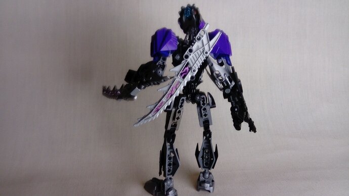 Razer, unlike the other Toa and matoran, is not biomechanical, he’s 100% mechanical. Built by the great (technically criminal) Tulon he has much trouble understanding and feeling emotions. This not only makes him a terrible conversation partner but also makes usually moral decisions into very logical decisions. He uses this excuse the exempt himself from the Toa code, although only killing when necessary. Other than that, he was built with inspiration from both Kopaka and Matoro, giving him great intelligence and quick reactions.