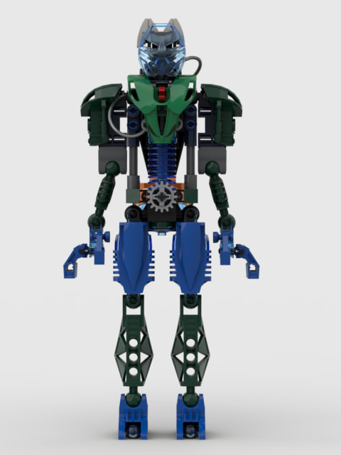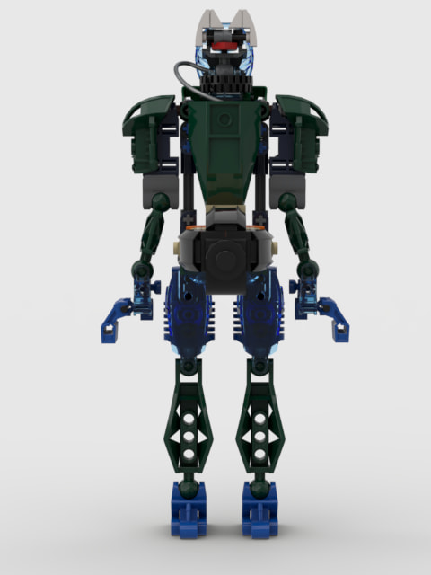 Here is the RedPandalorian! This model is 100% buildable. Note that the Rahkshi shins are supposed to be Ignika shins, and the green Nuva torso appeared in green as a late prototype. The zipline piece at the neck is supposed to be wrapped around his neck as greebling, but, as you can imagine, I couldn’t do that in Stud.io.