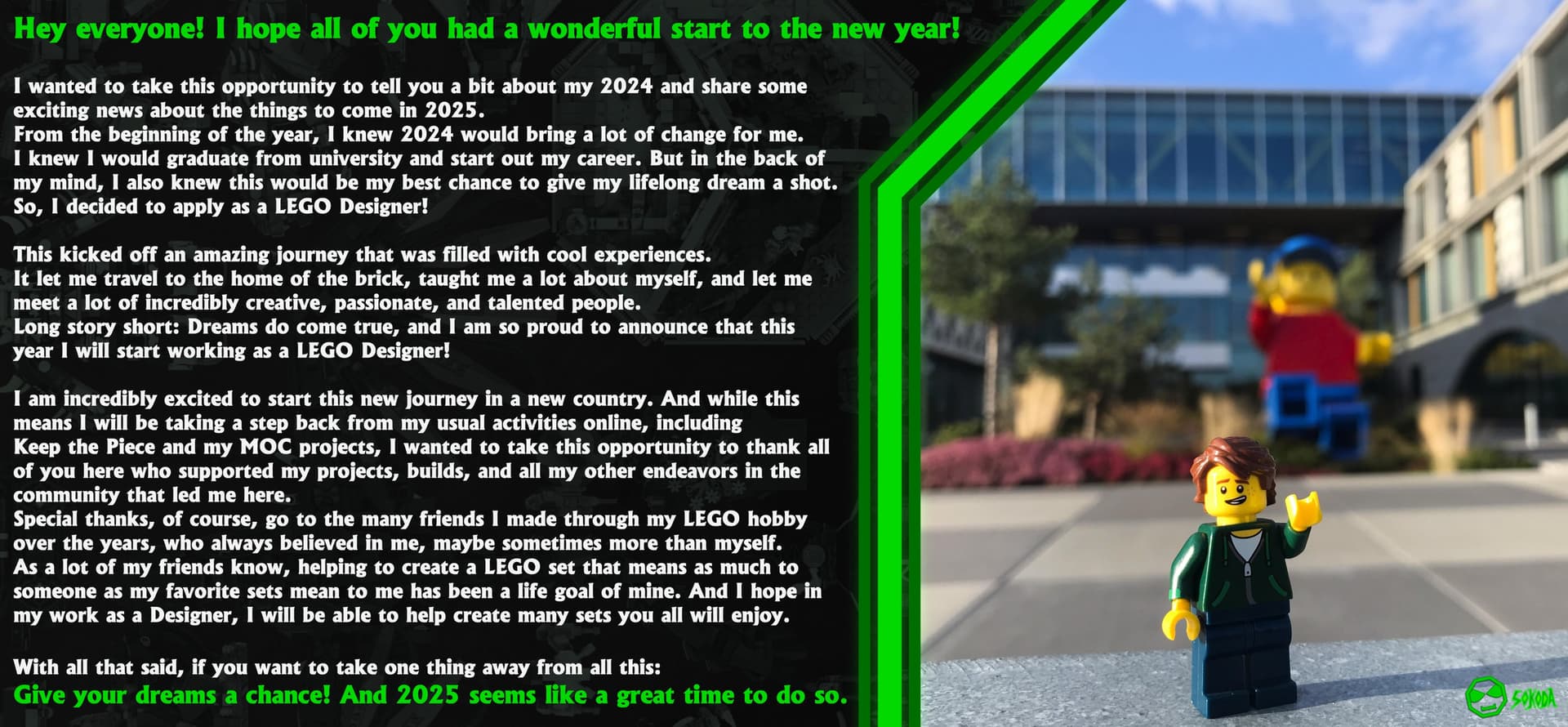 Hey there, I saw a YouTube short video that was about the failed Bionicle LEGO Ideas set by @Sokoda from a few years ago, and in the comment section I saw few comments claiming that he had become a LEGO designer offically working for LEGO. I just wanted to verify with the people here, is this true?