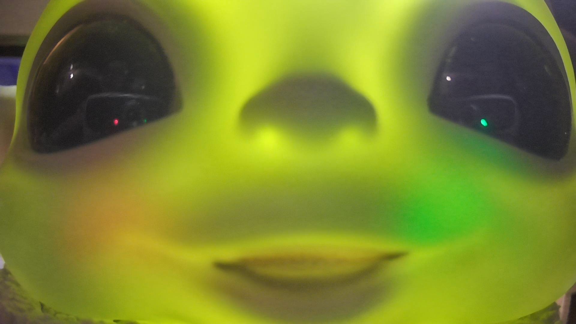 I took this picture of a toy with a hollow head under a lamp, and it looks very cursed- the C U R S E D topic kind of cursed.