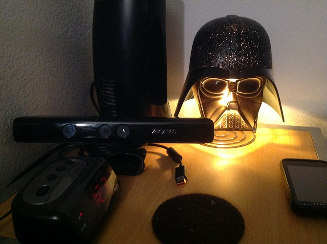 Got a Kinect and a darth Vader light for 14$ at good will (surprisingly I didn’t touch or replace the bulb; it still works from the previous owner.)