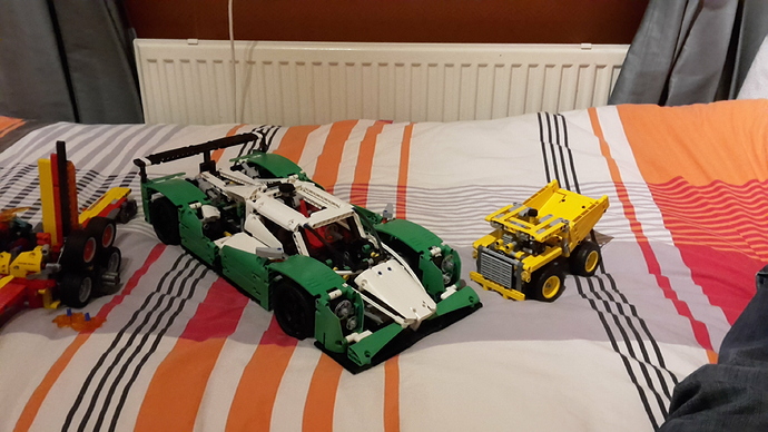 I love how the dump truck’s size absolutely pales in comparison to the usually smaller racecar