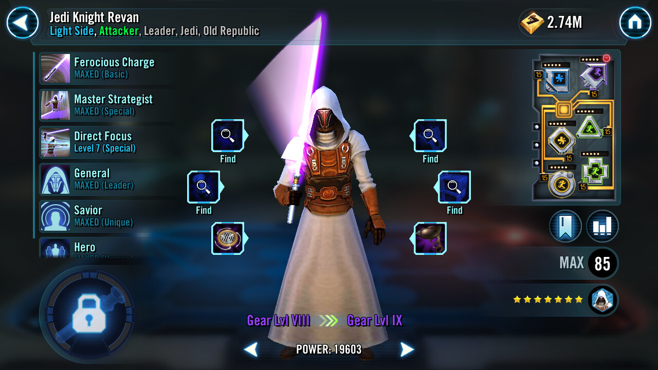After about a year of playing Star Wars: Galaxy of Heroes, I finally got Jedi Knight Revan without spending any money in the game (I could’ve unlock him months ago, but there were a few things that held me back…).