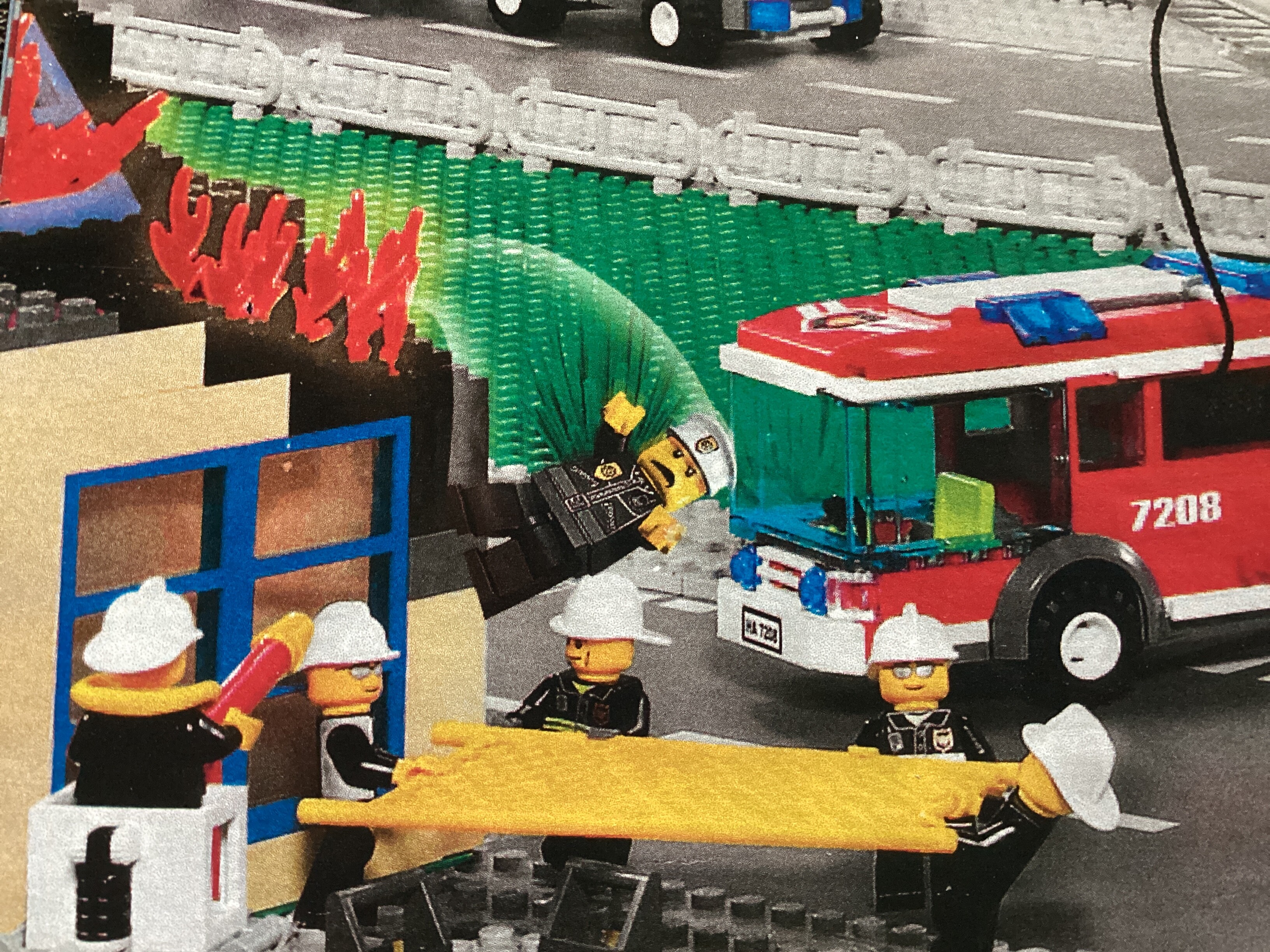 The city firefighter diorama is really nice and built entirely with real pieces. Then they added this guy.