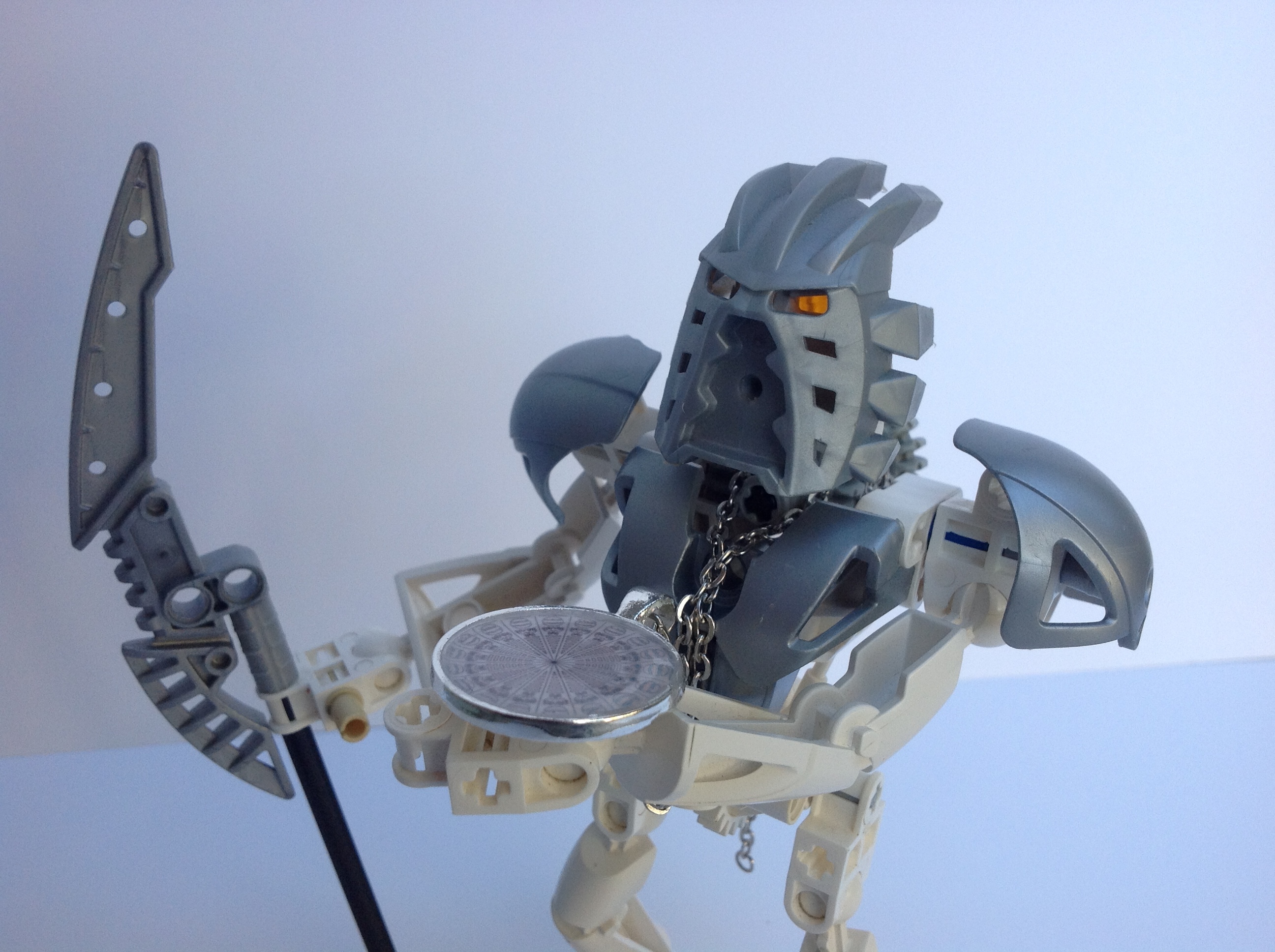 I special ordered a pendant with the Onu-Koro Sundial on it, and I had some fun taking these photos of Takanuva as he’s about to travel to Kardi Nui via portals. For those you don’t know, the Onu-Koro sundial can act as a compass to the Codrex. The Order of Mata Nui shrunk the Sundial and gave it to Takanuva.