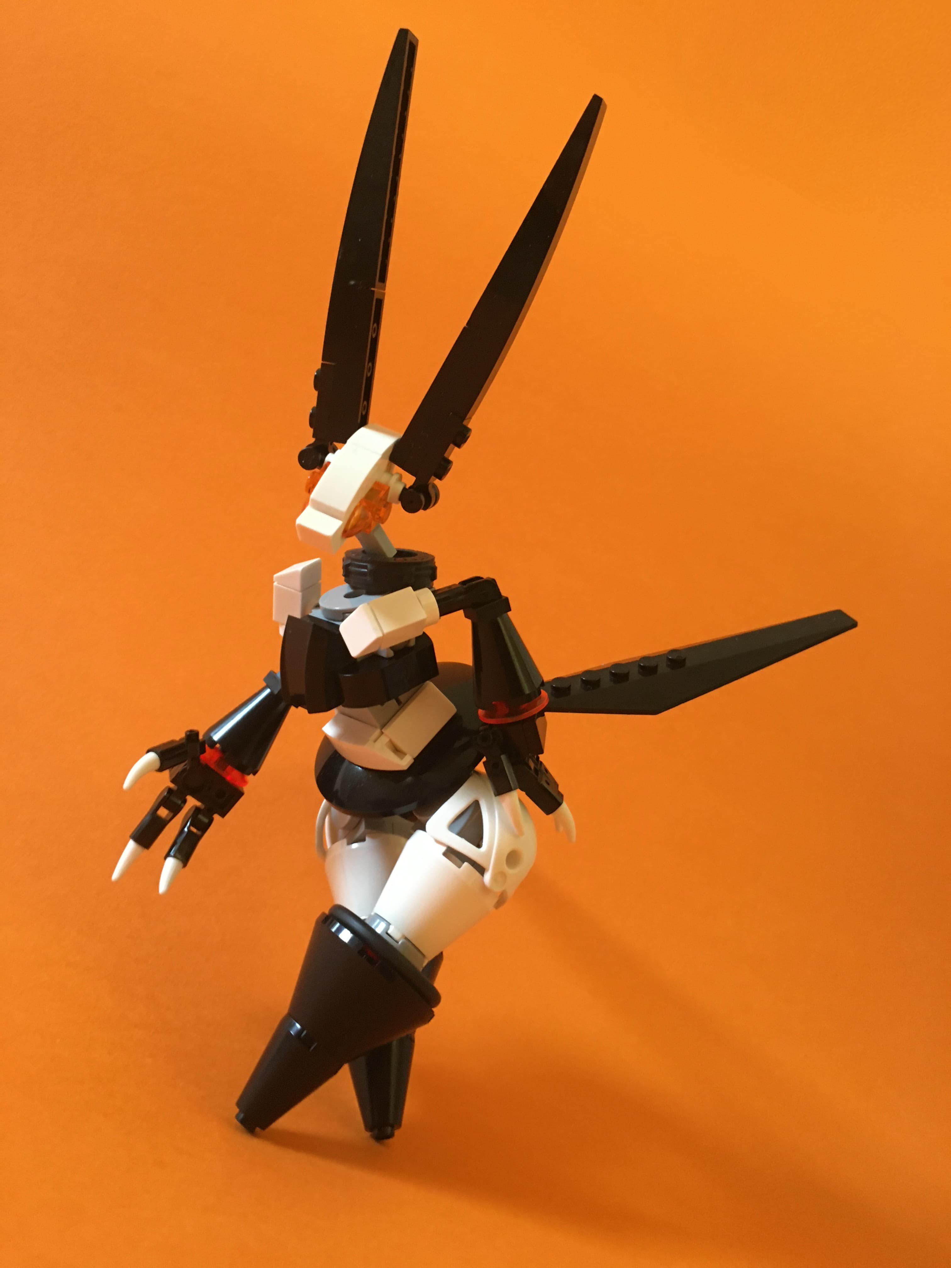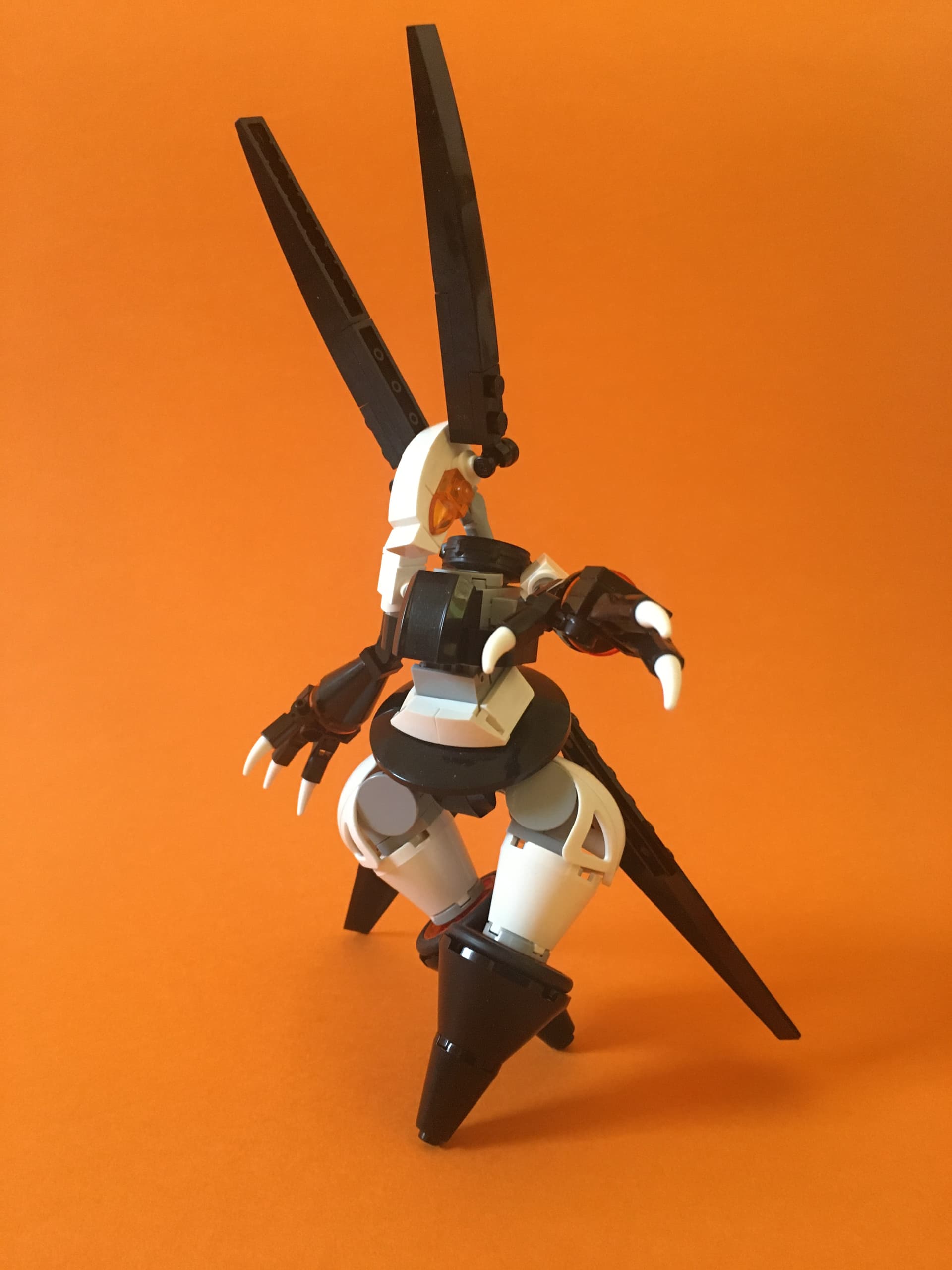 Speaking of the legs, the thighs are rather problematic. In your other builds you have had some wide hips, but they always feel cohesive and intentional (and for clarity, I have no issue with builds that exaggerate certain features to absurd degrees, provided they still exemplify good design). Here, though, as I mentioned, they don’t match the rest of the creature. They don’t end in appendages, and they’re too smooth and rounded for the angular and sleek feel of the upper body, making them feel like part of another MOC instead of part of Val here. If you’re attached to the design of the legs (which you should be, they’re very well-built!), try putting them on another MOC and giving Val some more sharp edges. I am certain wide hips can still work, but the current design needs some fine tuning.