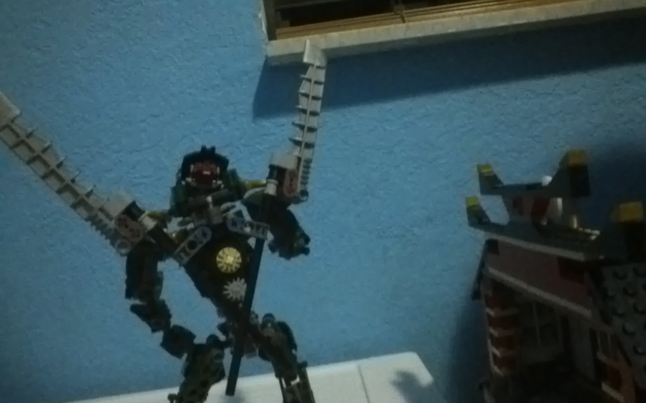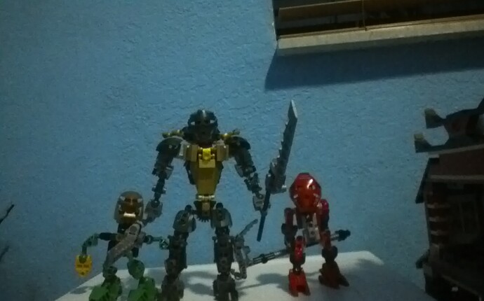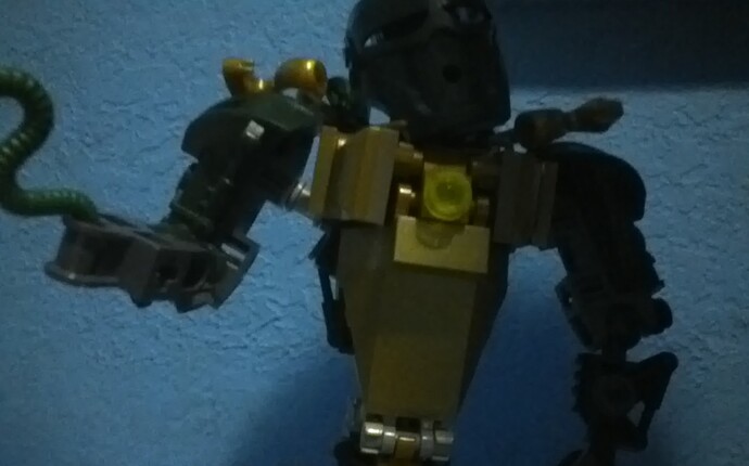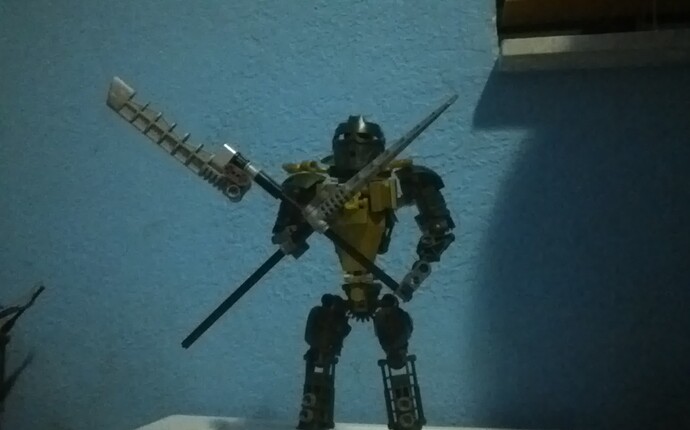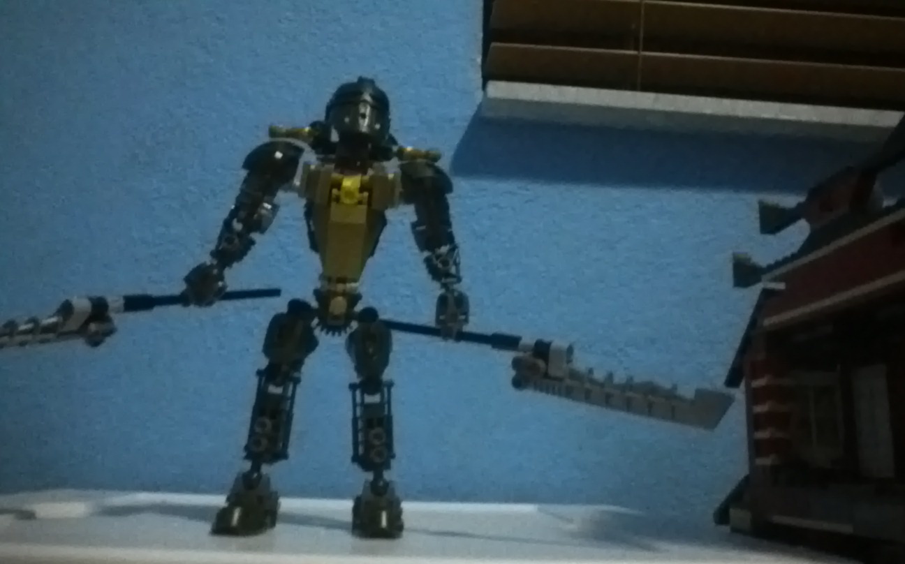 Please note that she is basically a heavily modded Matau Metru, like I said before. I added on a few gold system pieces I had lying around due to my lack of gold Bionicle pieces. I also covered up most, if not all, of the holes in the Matau Metru set.