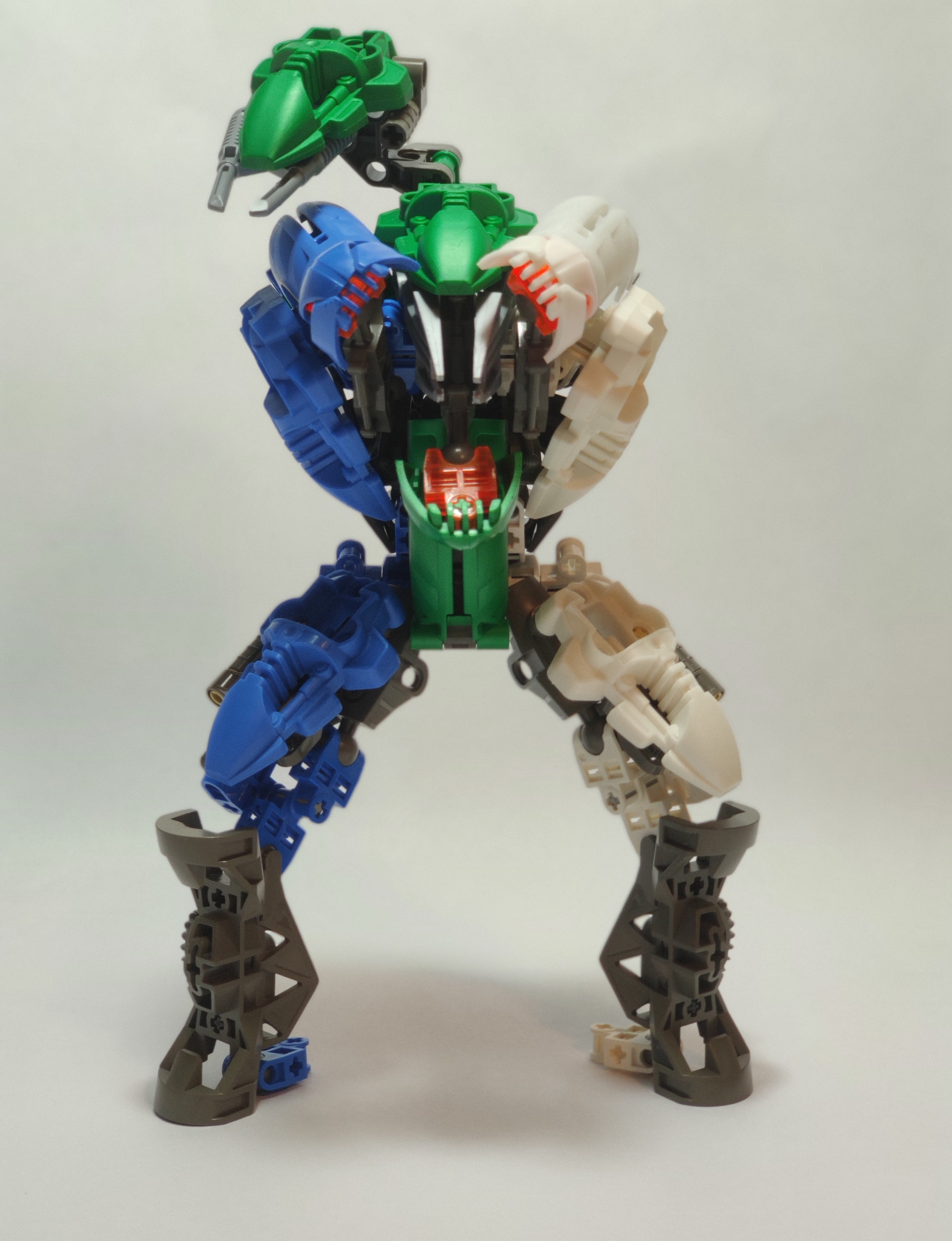 A mecha inspired (question mark…?) Kaita combiner MOC; created with Guurahk, Lerahk, and Kurahk, this yet again only uses the parts from the original three sets.